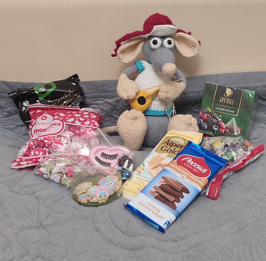 Мышь приехал с подарочками: и сладенькими (нескончаемое количество конфет, прям тааак много) и сюрпризиками для "хомяка". Я очень довольна! Долго решала участвовать или нет, и рада, что участвую! Галиночка Васильевна, еще раз большое спасибо за посылку, обнимаю!