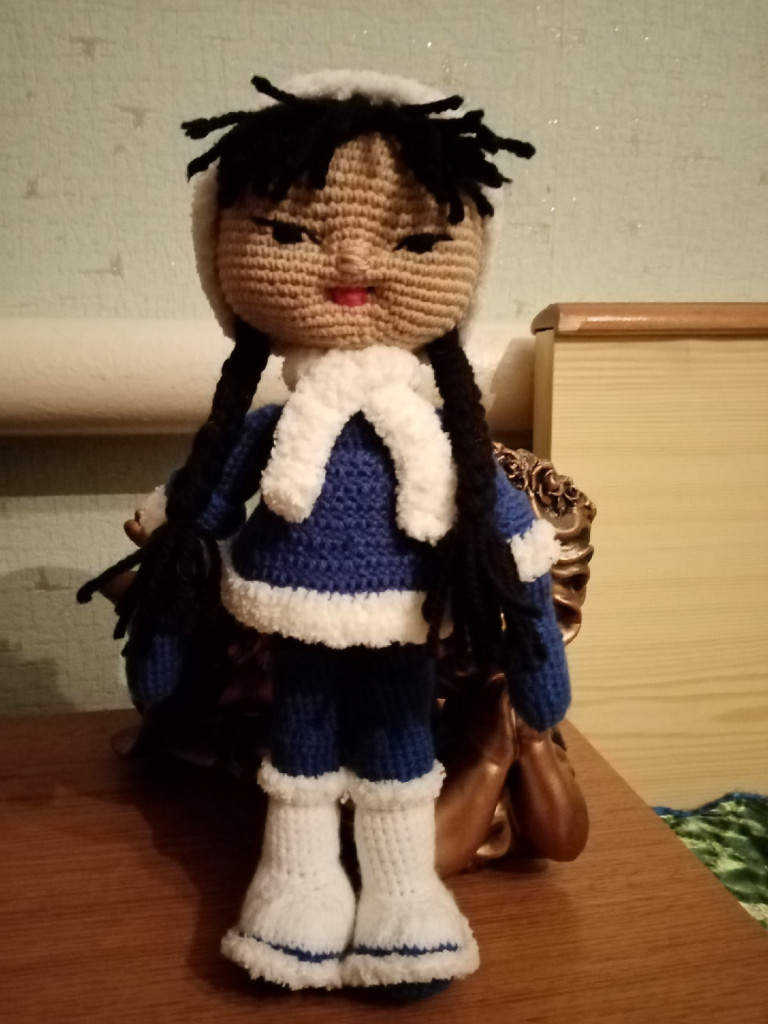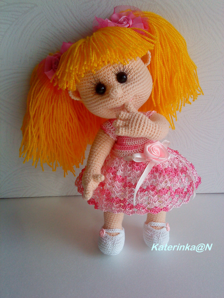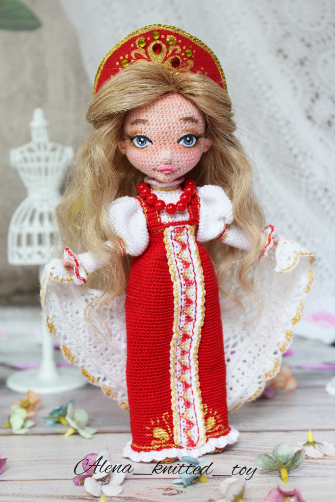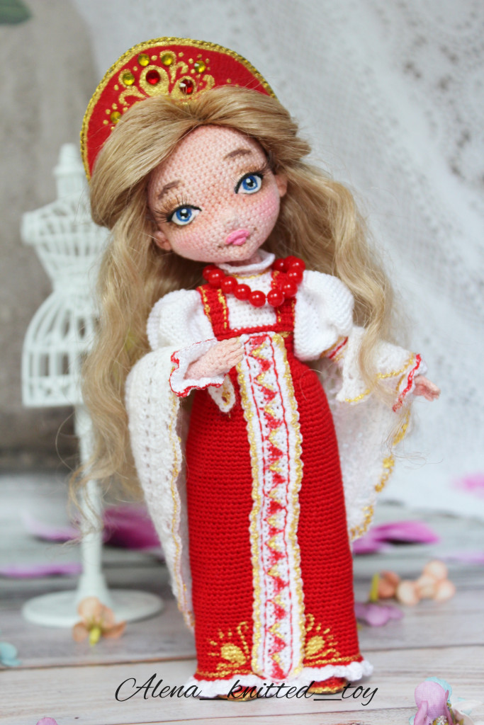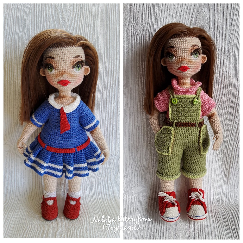 Куколка одна, но разные образы. Обычно заказывают два наряда. Вязана по моей схеме