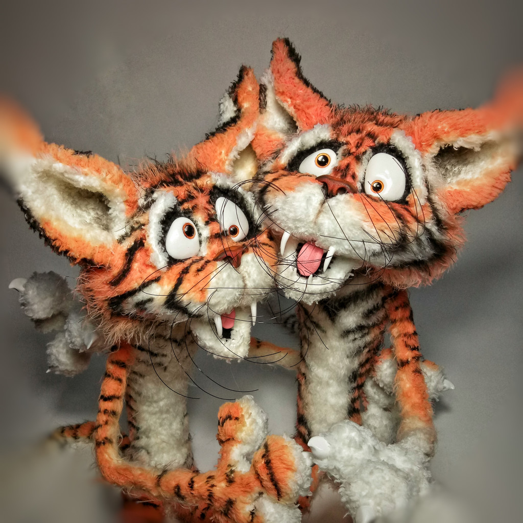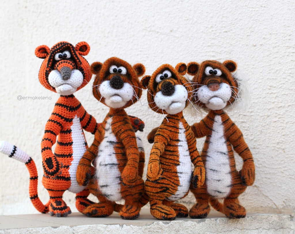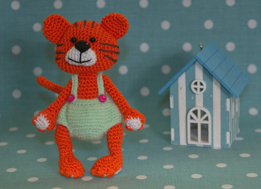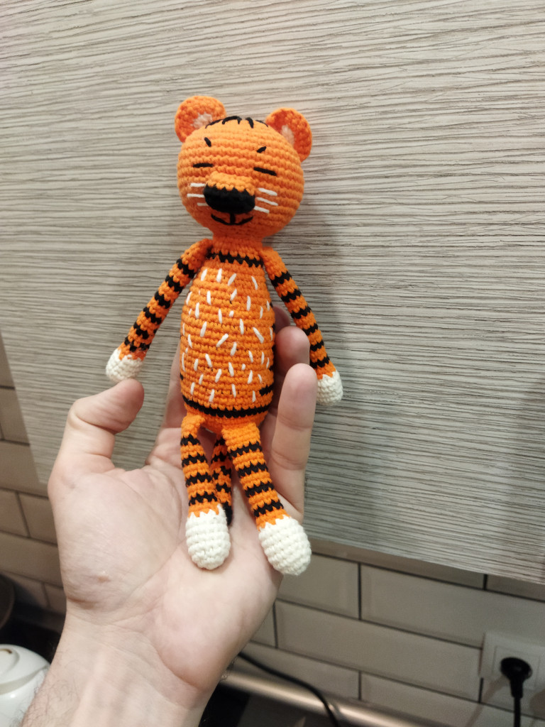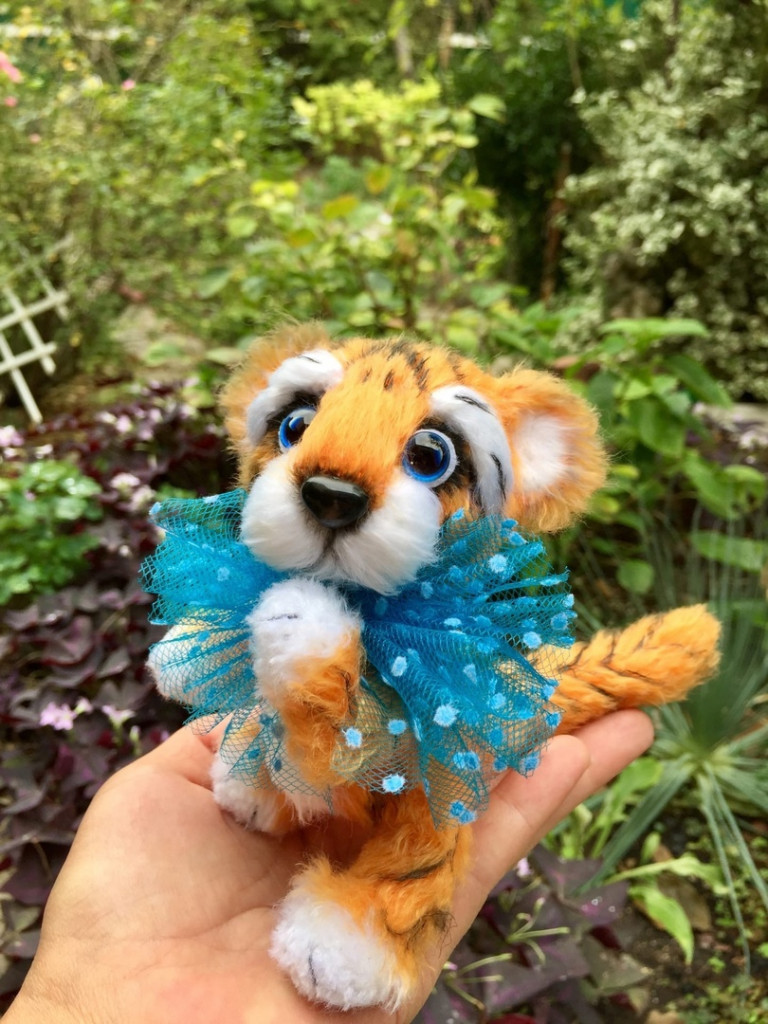 тигрёнок Усик связан из КХТ,голова на шплинтовка креплении,лапки и хвостик на проволочном каркасе- всё подвижно, глазки стекло,полоски нарисованы маркером,рост тигрёнка 15см
