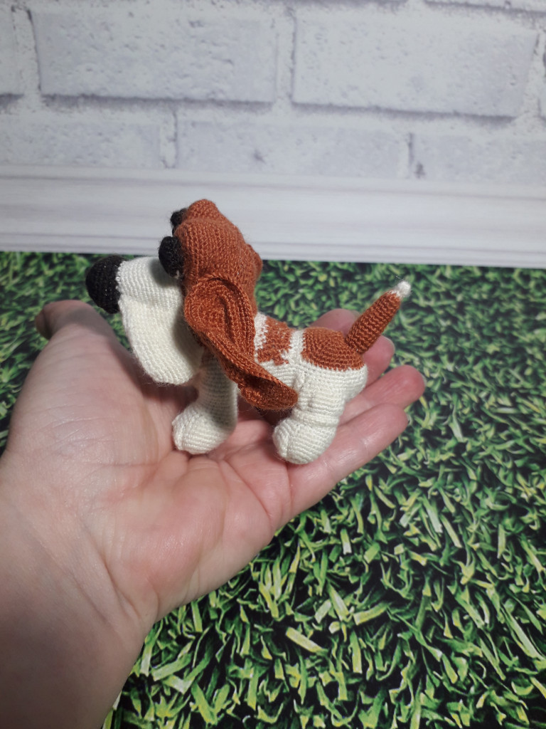 Гамлет-бассет связан по мк Галины Писаренко крючком 0.7,получился малышок 7×9 см