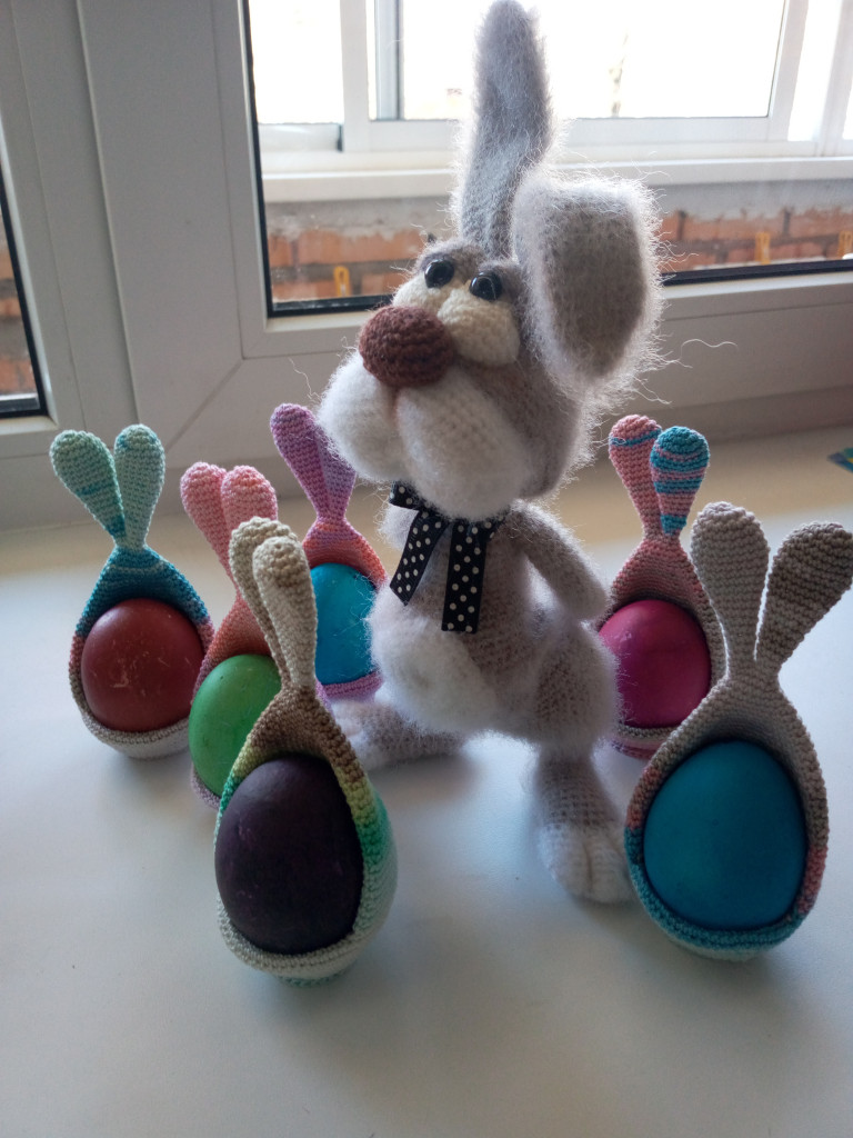 Зай по мк Анны Родной, ушки на яйца по описанию Оксаны Берейшик.