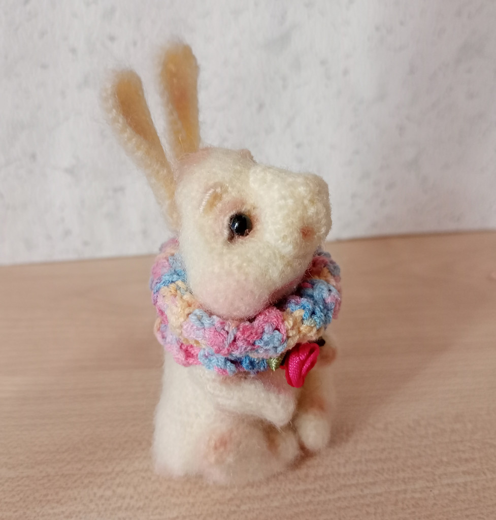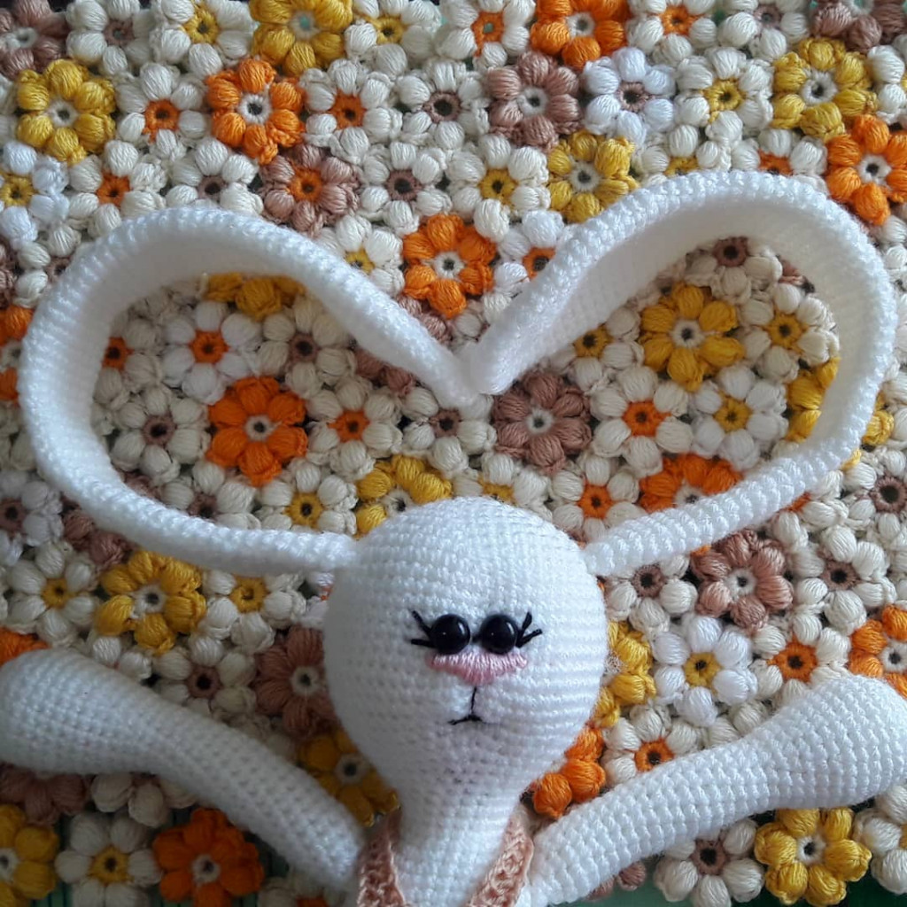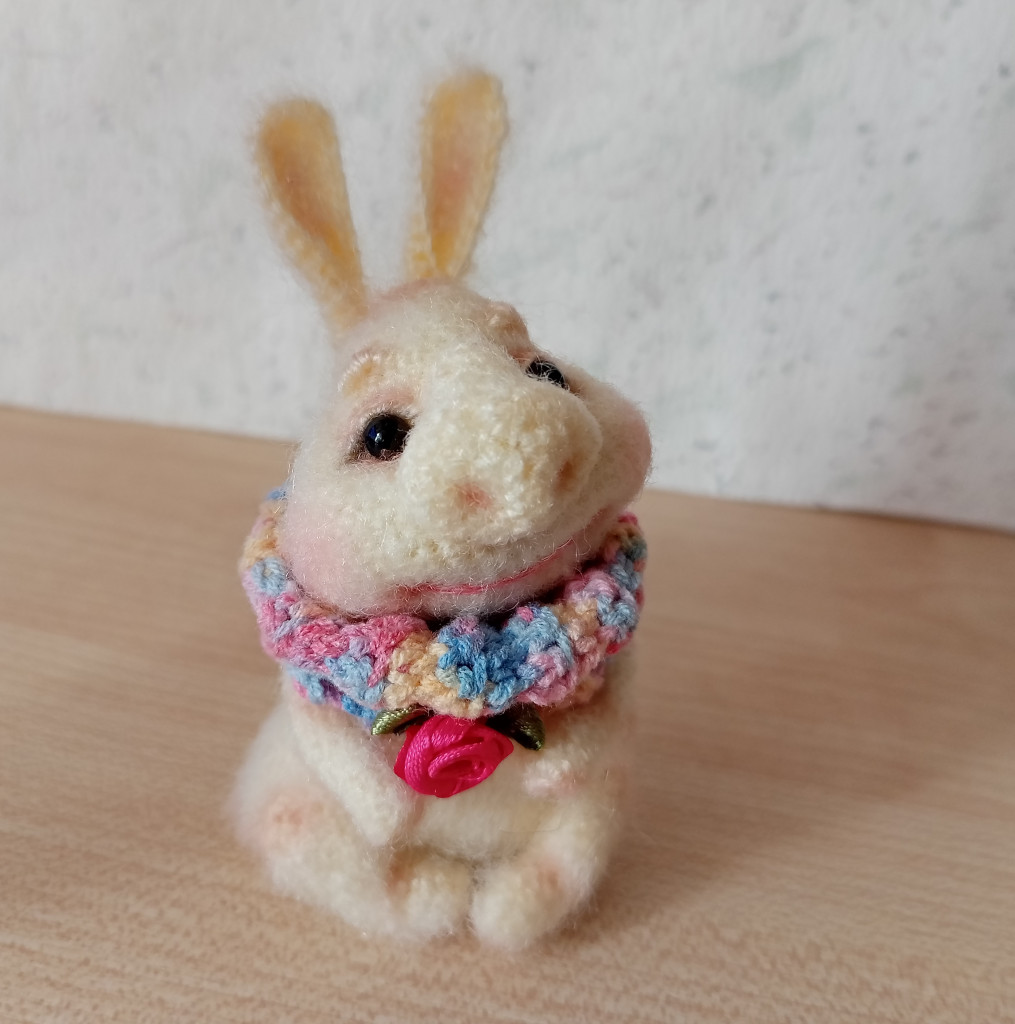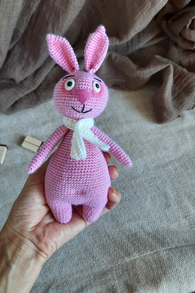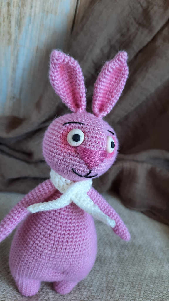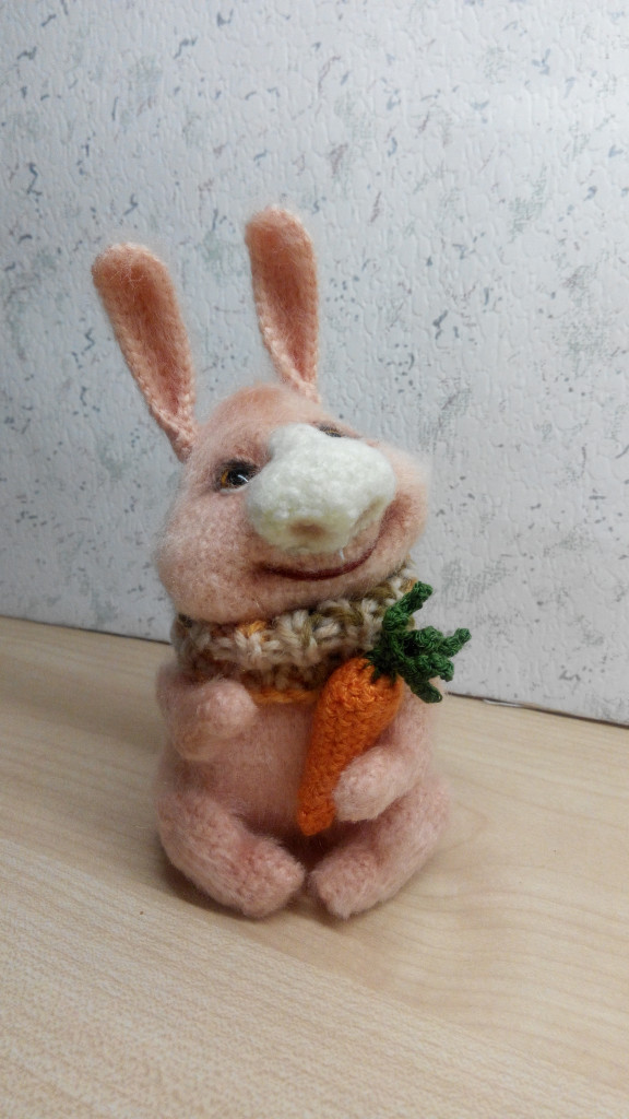 Зайка по мк Pola, связан из ализе ангора голд, кр 1 кловер, тонировка -тени. Рост 8 см