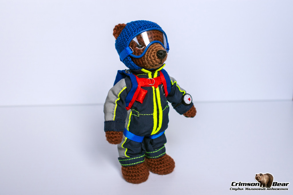 Размер 15 см. Подвижные лапы на меднопроволочном каркасе и шплинтовое крепление головы. Яркая экипировка.