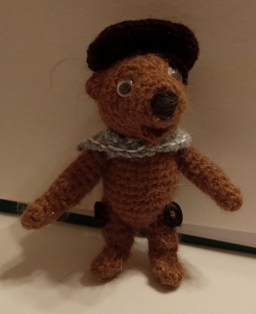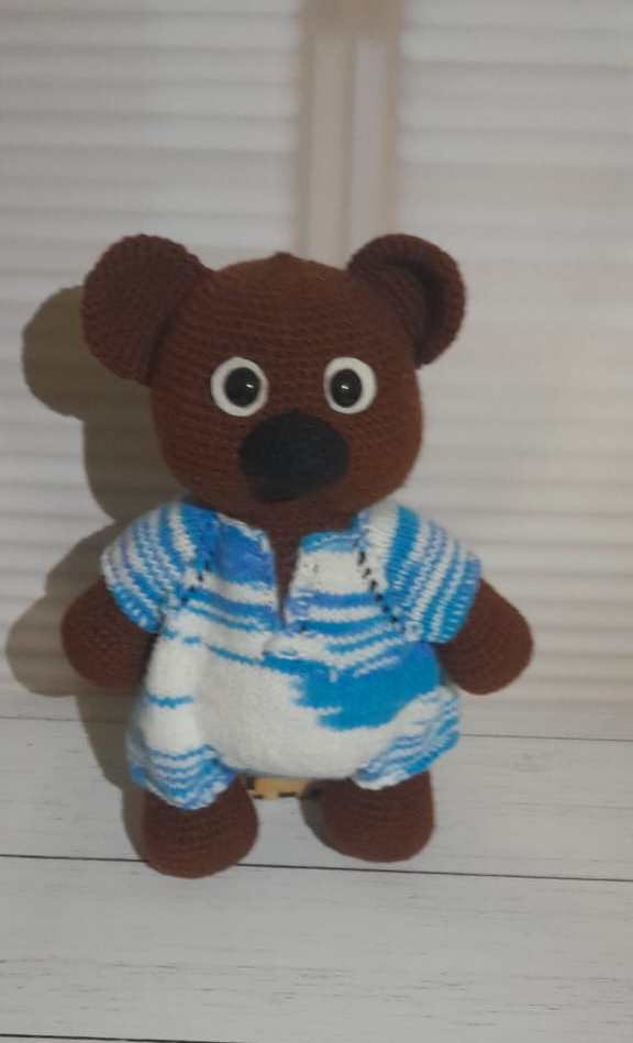 Мишка из турецкой пряжи, 12 см стоя, на шплинтах.