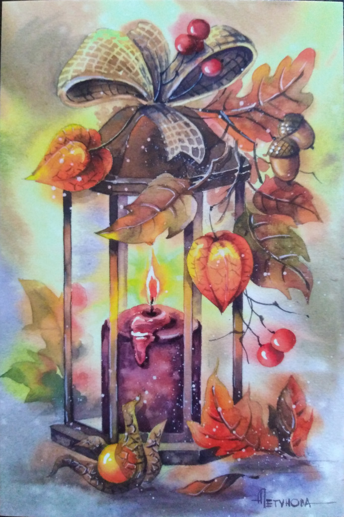 От Жанночки @Анюта8 атмосферная осенняя открытка с рисунком К.Бабок плюс сюрпризы: не менее очаровательная открытка, наклейки, закладка тоже с осенним рисунком! и... от Жанночки @nisana и по осеннему обмену и с игры на одну букву С и, конечно же, с сюрпризными открытками и разными приятностями! Оформление красивое до безумия! Прям самостоятельная открытка! Девочки, дорогие, спасибо Вам огромное!!!!