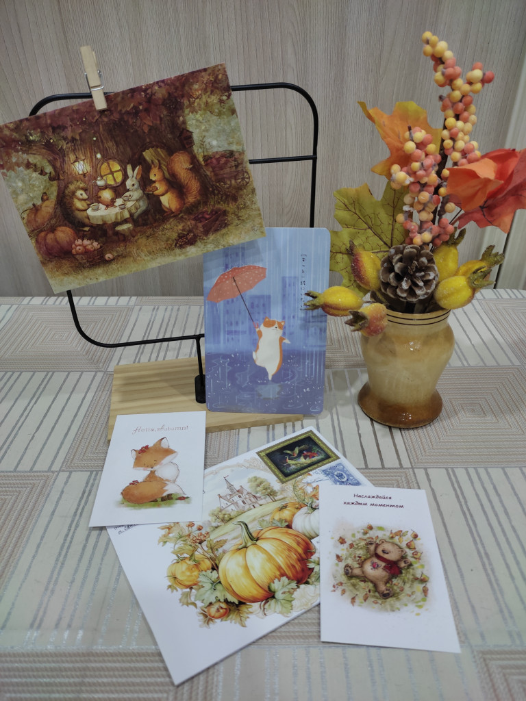Получила конверт от Жанны @Анюта8 с осенней открыточкой Петуновой и не только! Еще наклеечки, сюрпризные открытки и закладка!