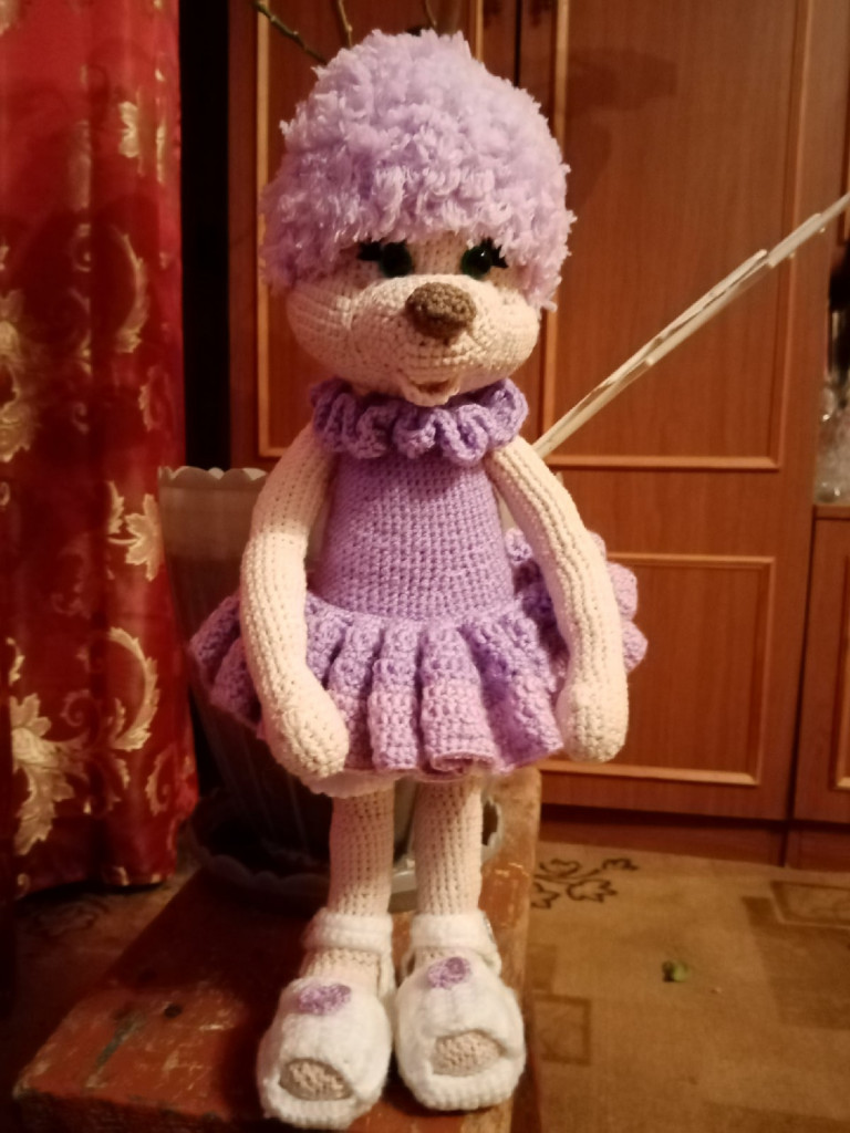 Связаны по мк С.Перцевой крючком 0.7 из тонкой п/ш пряжи,рост вместе с ушами 20 см.