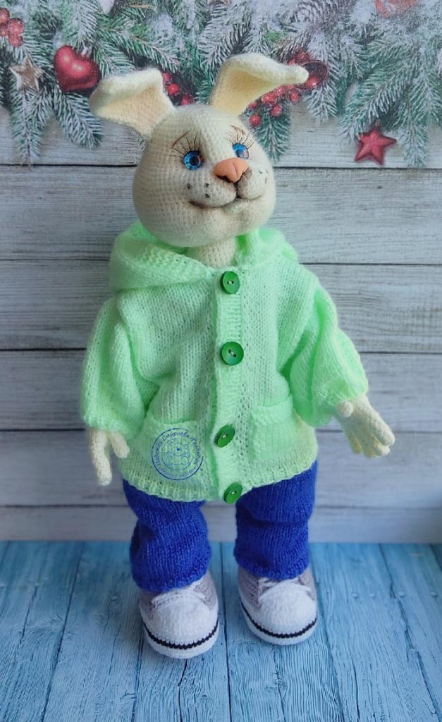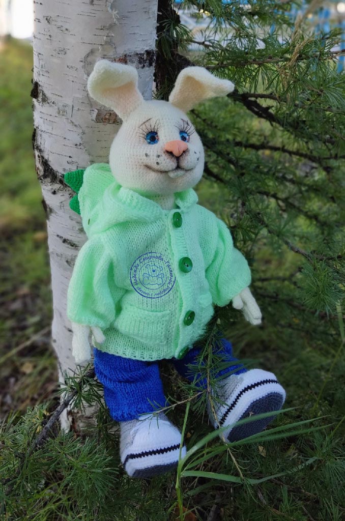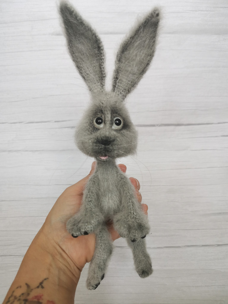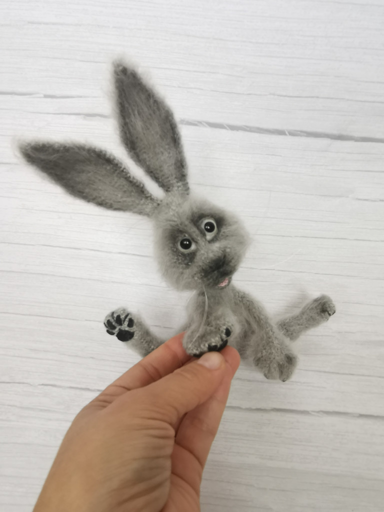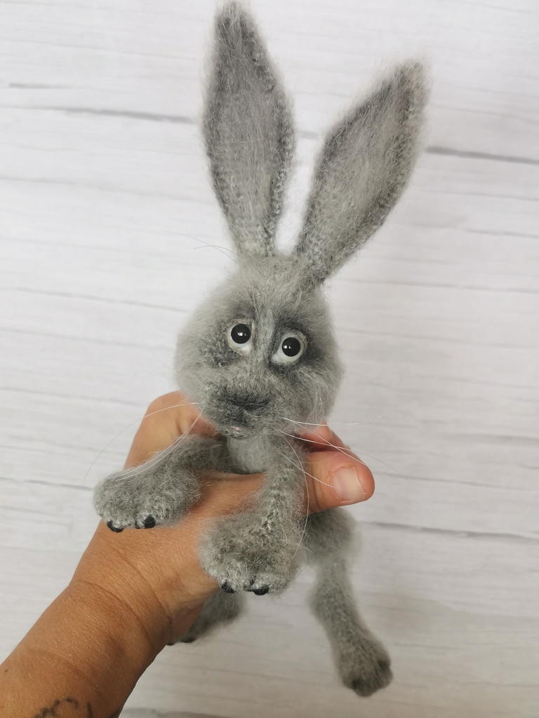 В рамках тестирования, собственного МК, и его написания, родился ещё один зайчик, в другой пряже и немного в другом оформлении :knit: . Чувствую пока напишу МК, навяжу дюжину зайцев, чтоб понять как описать то что у меня получается.((( :facepalm: :dont_know:
