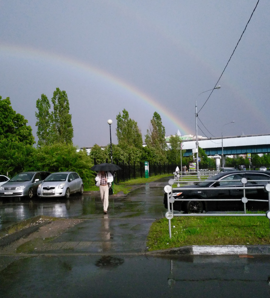 В Москве тоже бывает такая красота. На заднем плане станция "легкого", т. е. наземного метро в районе Южного Бутово. Поймала момент не в этом году).
