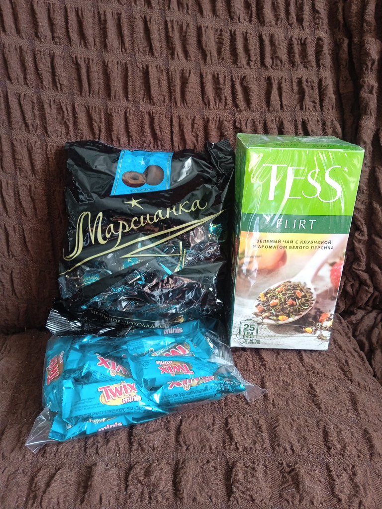 Он мне привёз чай с моими любимыми сладостями, причём один из чаёв очень вкусный и полезный