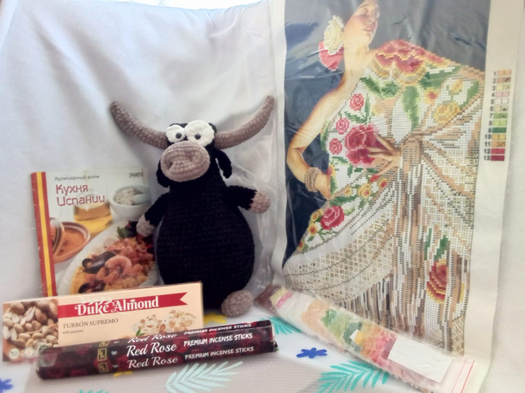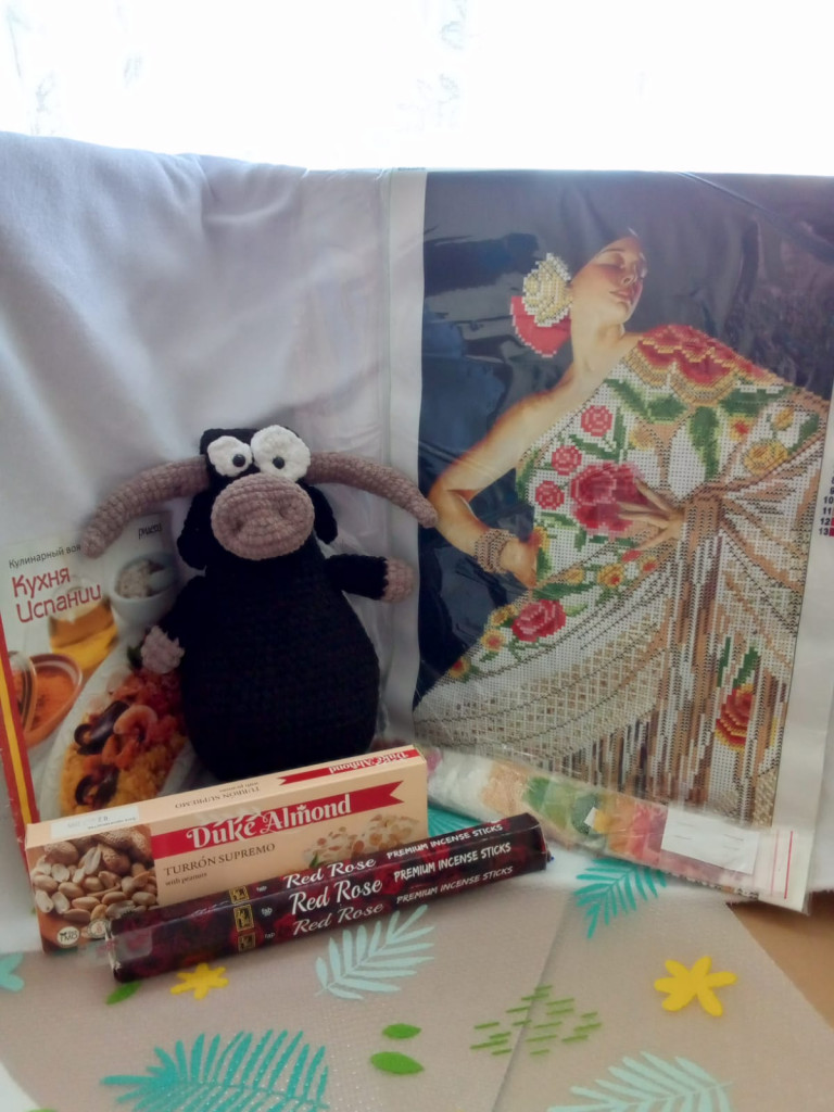 А ещё картина для вышивания бисером, сладости испанские, книга с испанскими рецептами и всё это пахнет испанской розой!