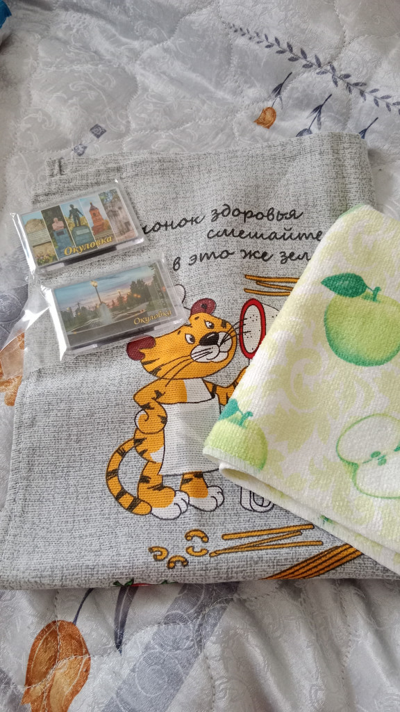 Шерсть для валяния, и полимерная глина (причём всё очень нужного цвета) и заготовка матрёшки, будем с дочкой её расписывать магнитики с видом города, очень люблю такие и всегда нужные в хозяйстве полотенца @Анюта8 огромнейшее спасибо за посылку, за лемура, пряжа из которой он связан так приятна на ощупь