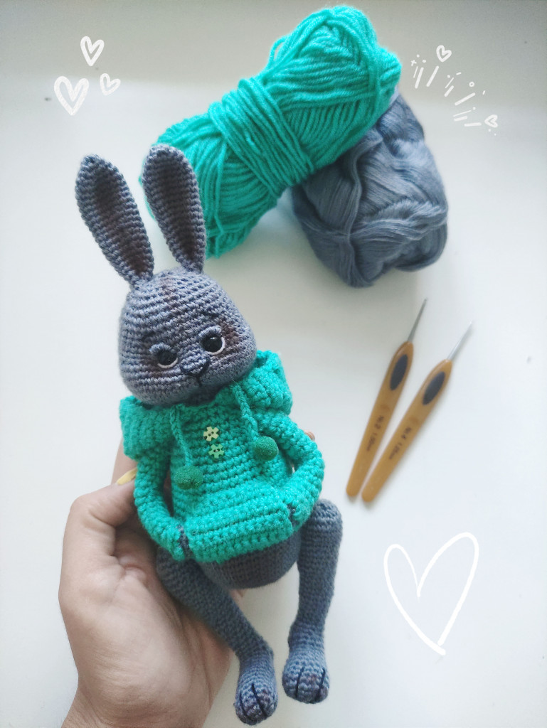 Заяц в уютном ярком бирюзовом худи. МК взят из Пинтерест. :toy: