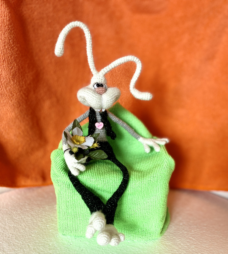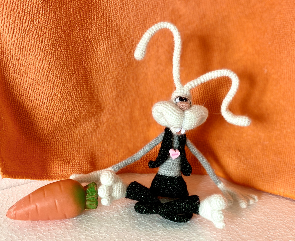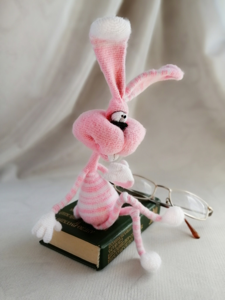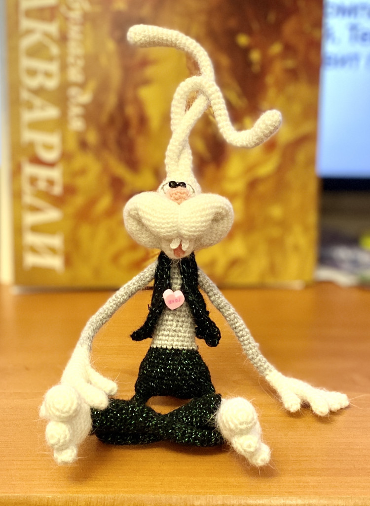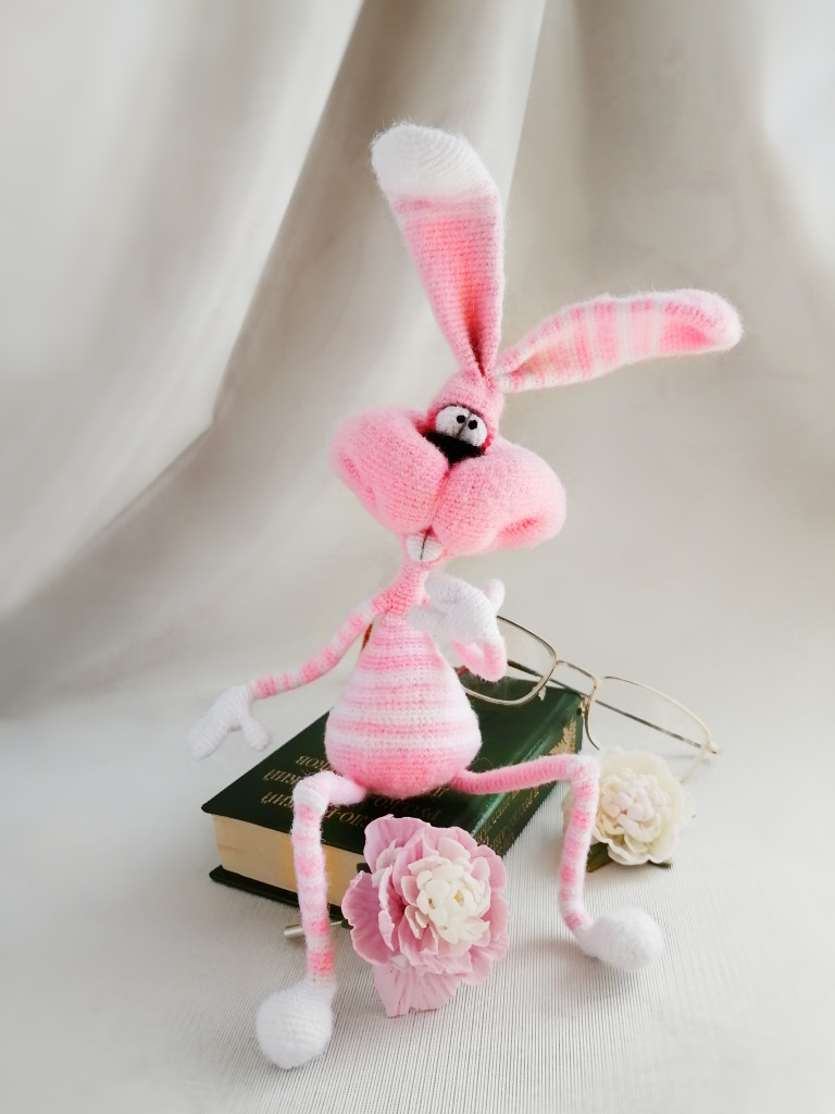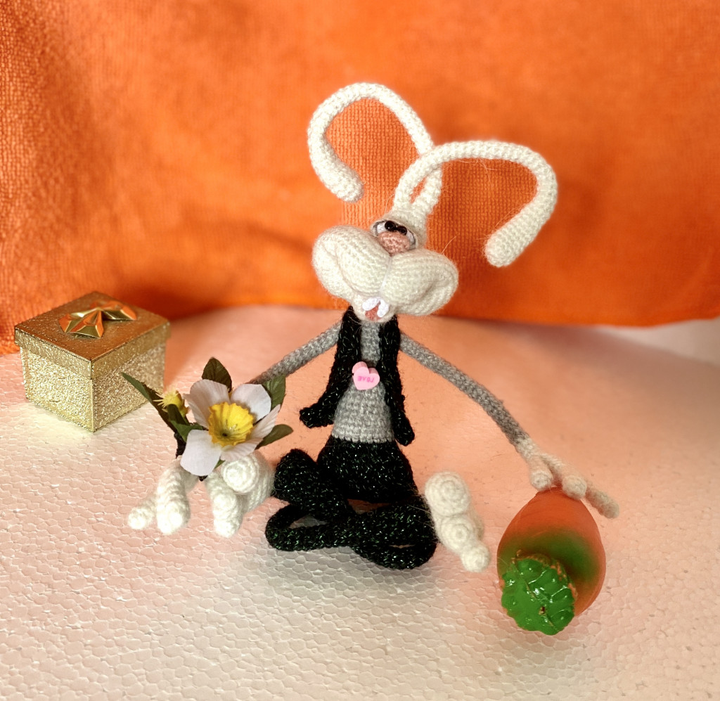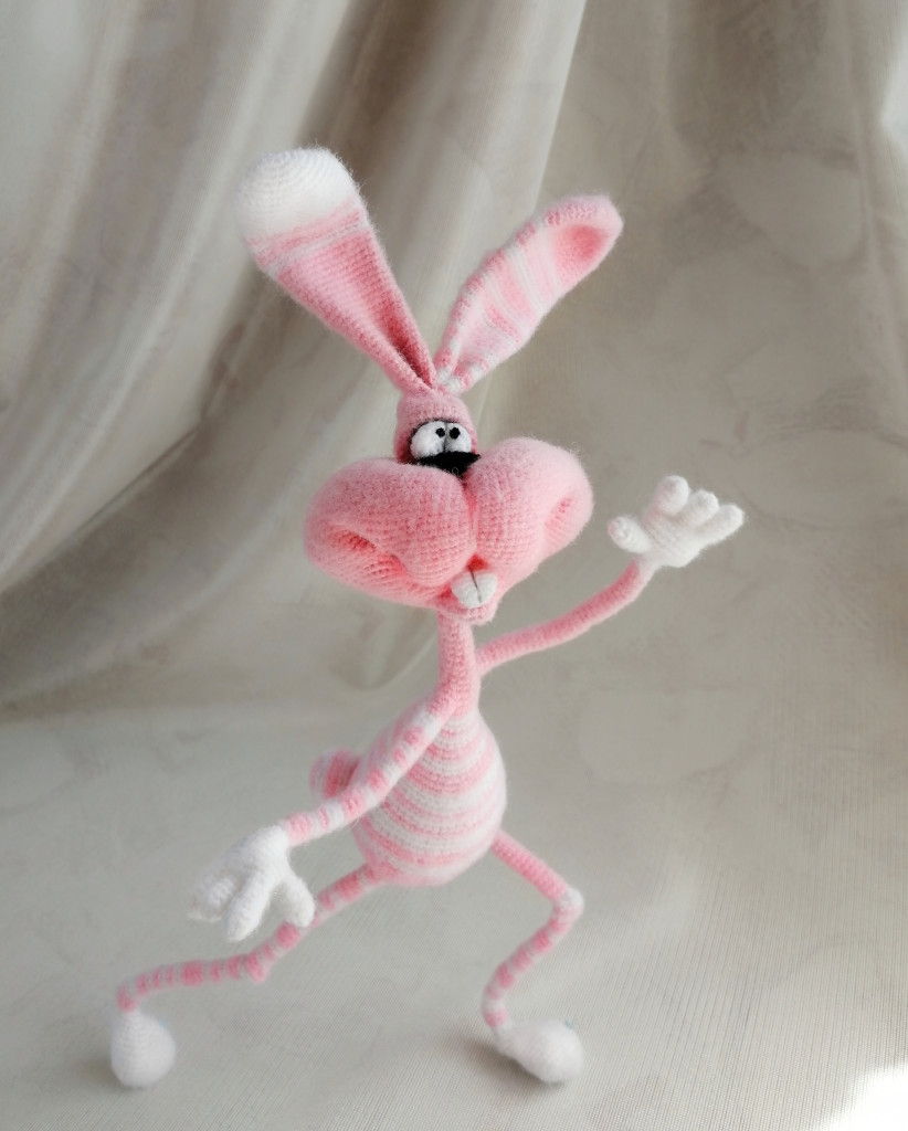 Вот, увидев обьявление о старте заячьего конкурса, решила - не пропущу. А так как зайцев в этом году уже видимо-невидимо, захотела связать нетипичного ушастика.