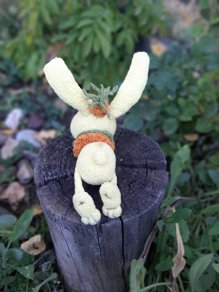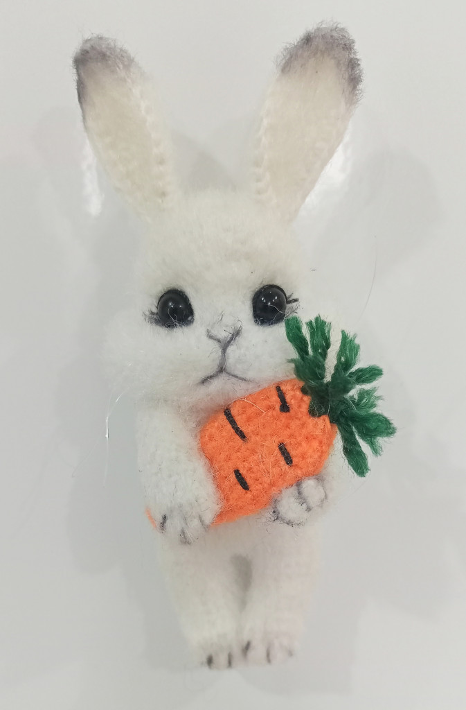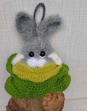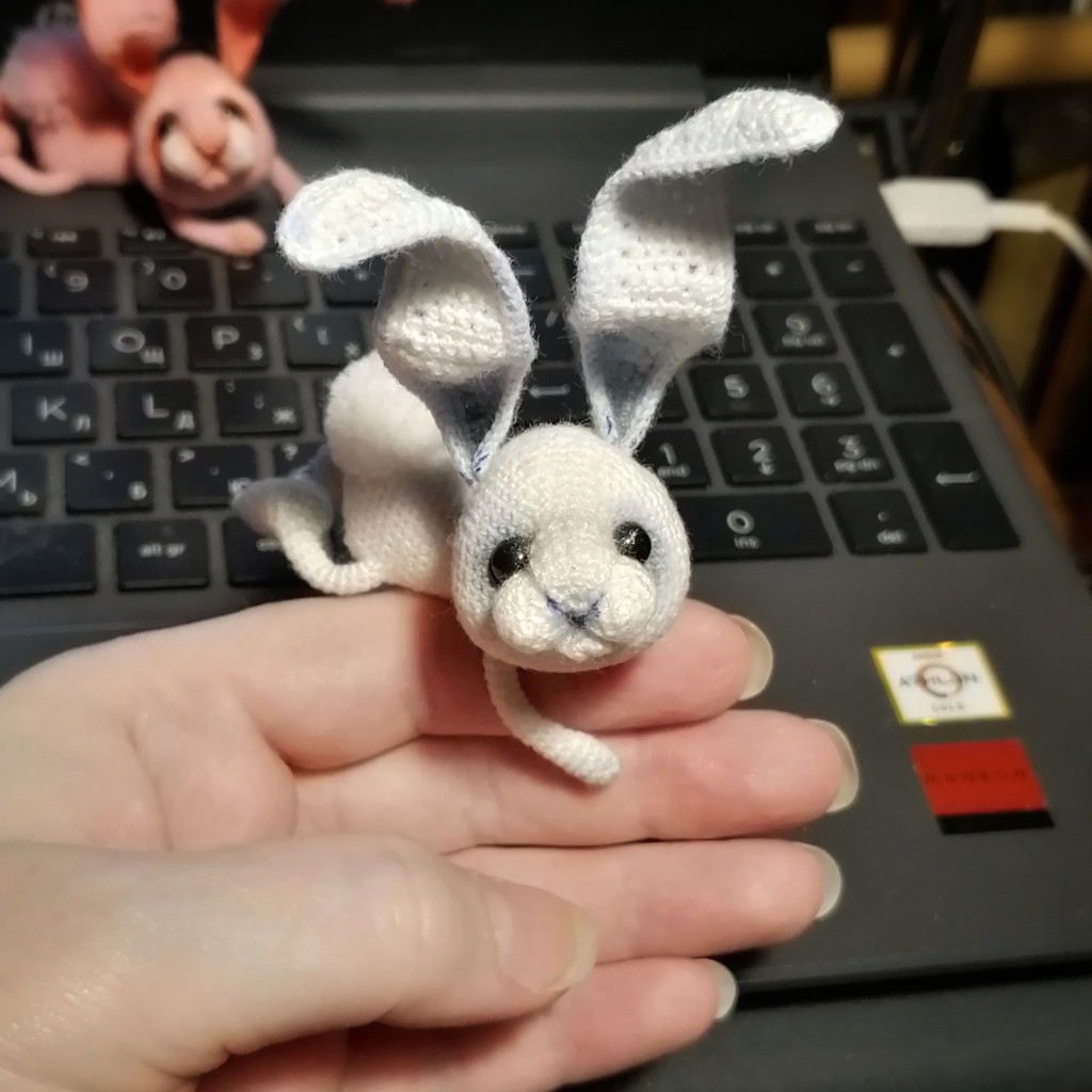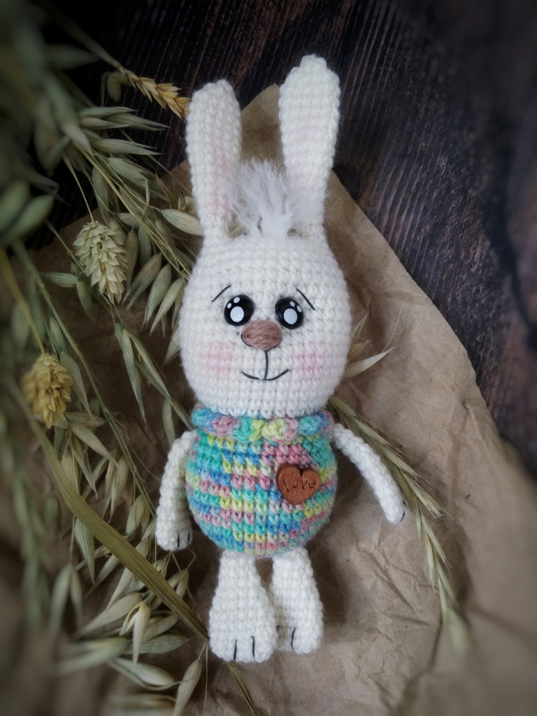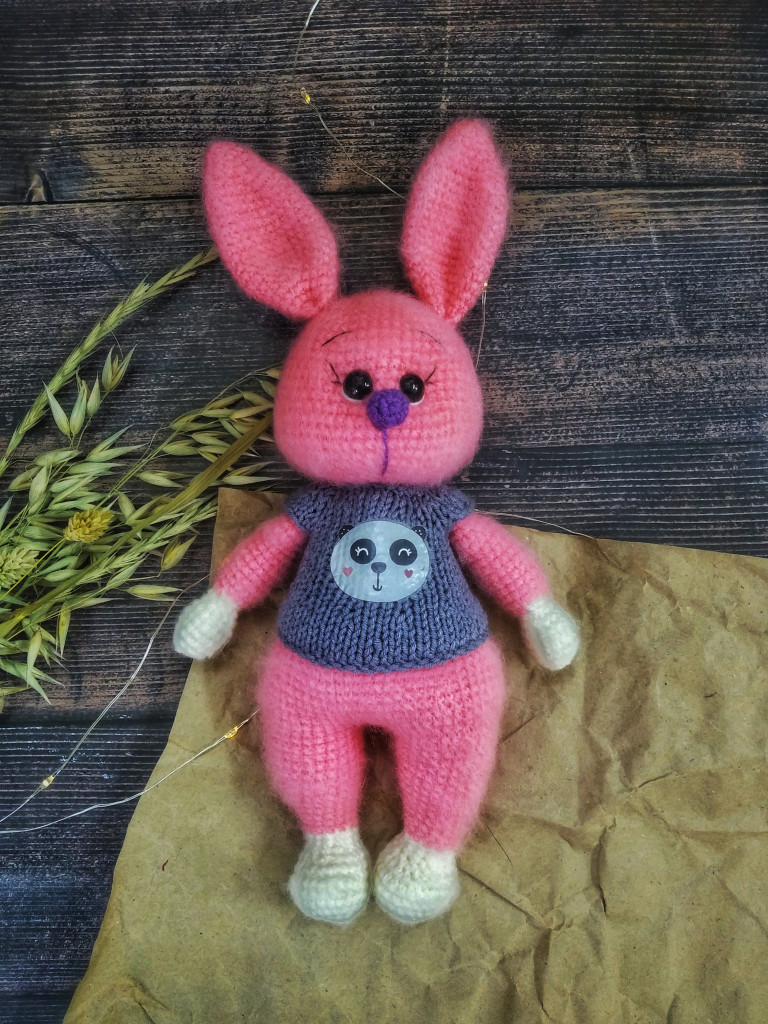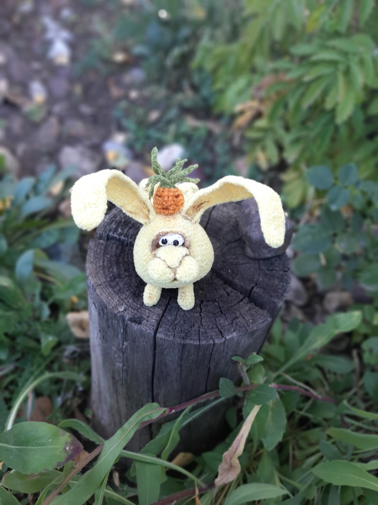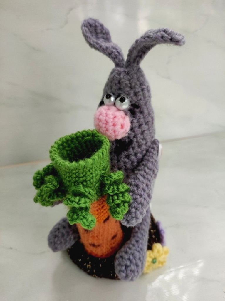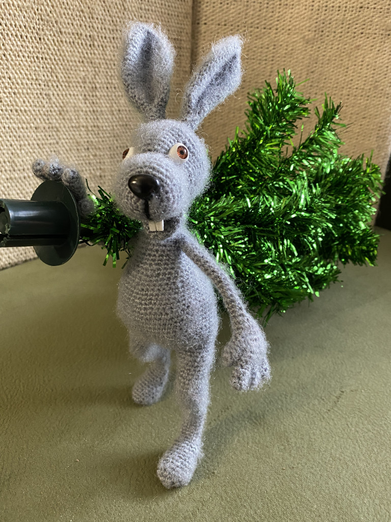 Вот, увидев обьявление о старте заячьего конкурса, решила - не пропущу. А так как зайцев в этом году уже видимо-невидимо, захотела связать нетипичного ушастика.