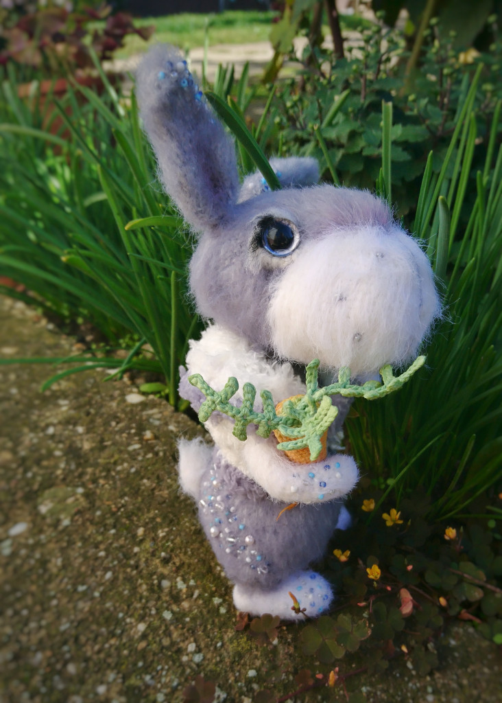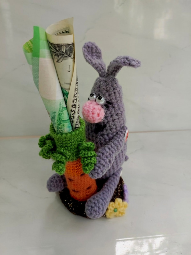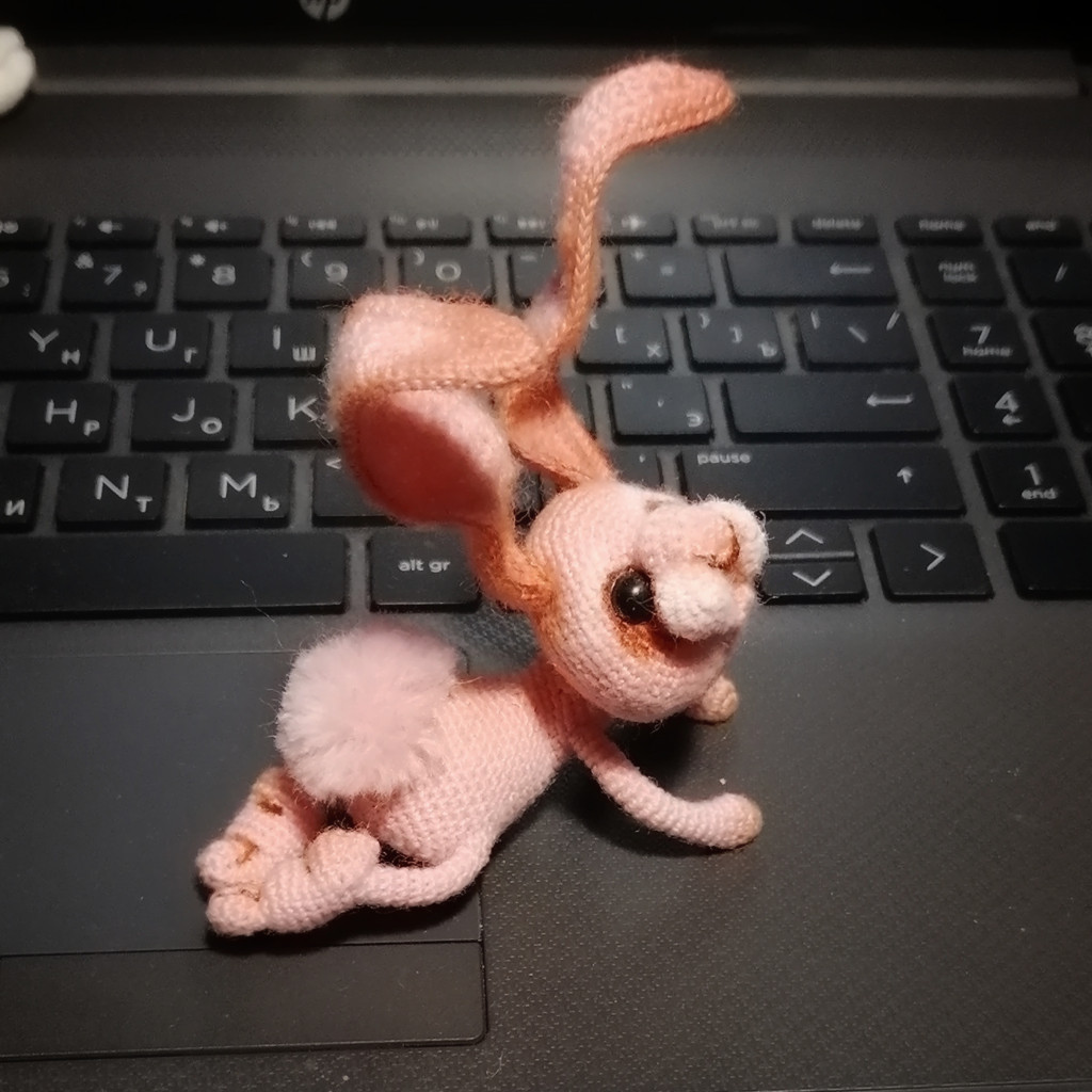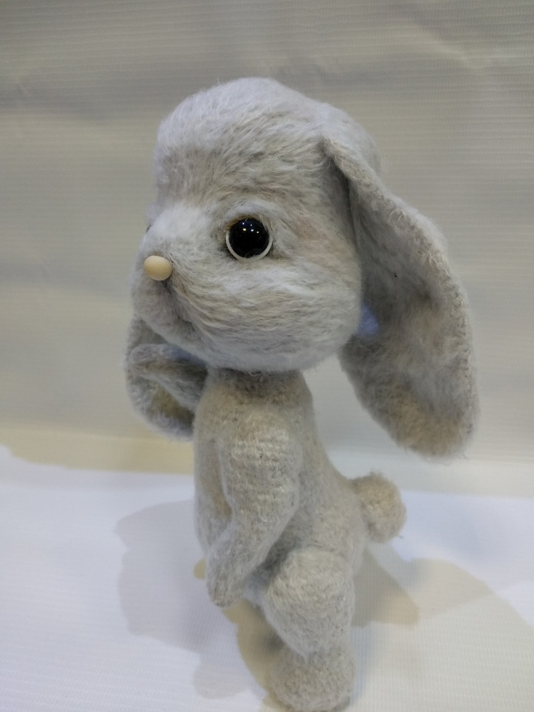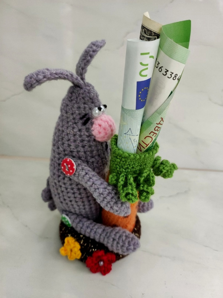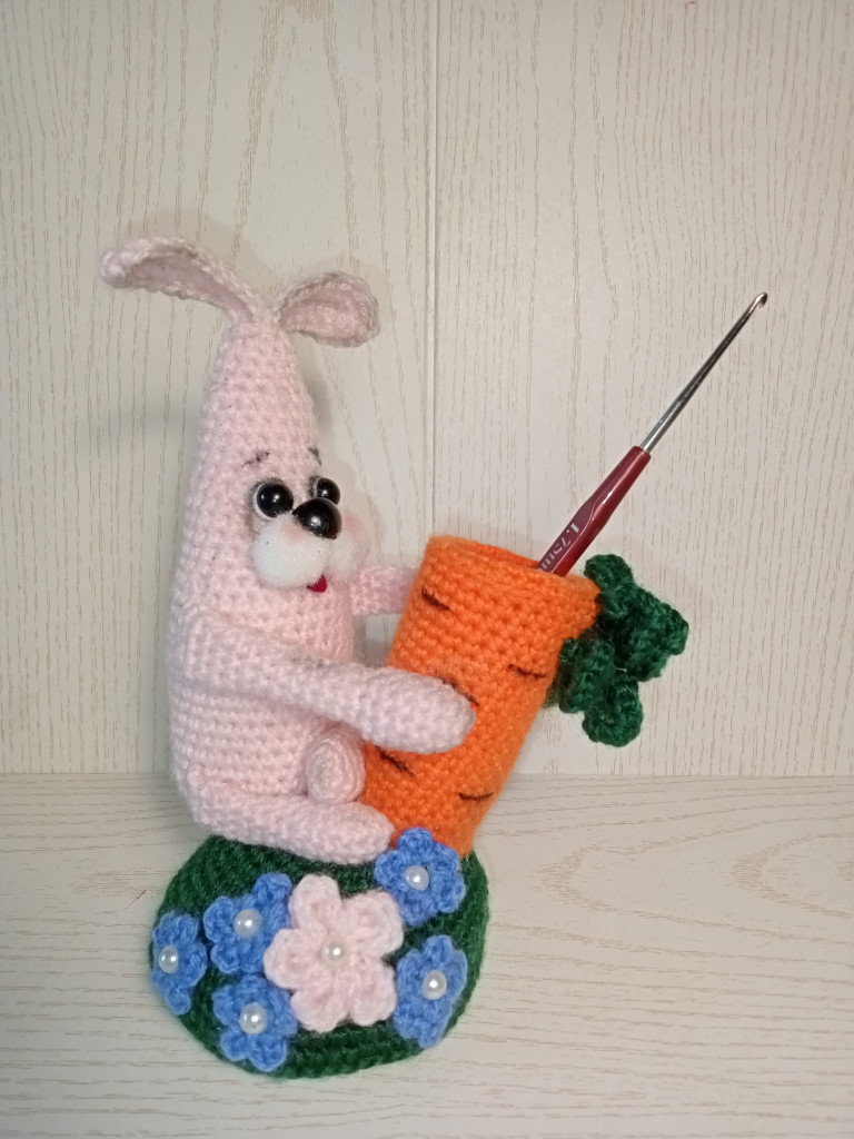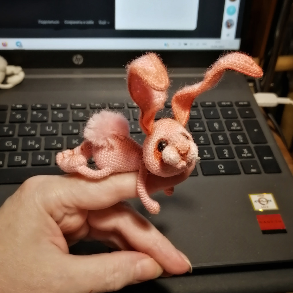 Вот, увидев обьявление о старте заячьего конкурса, решила - не пропущу. А так как зайцев в этом году уже видимо-невидимо, захотела связать нетипичного ушастика.