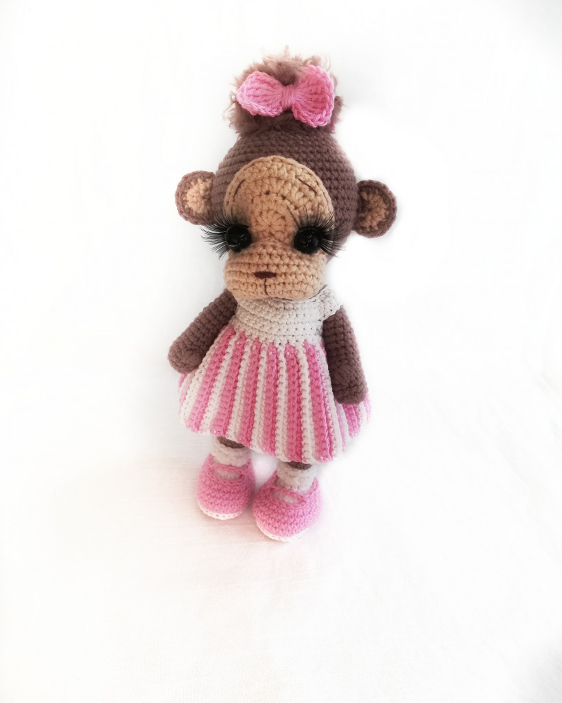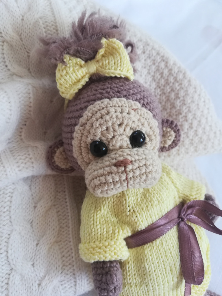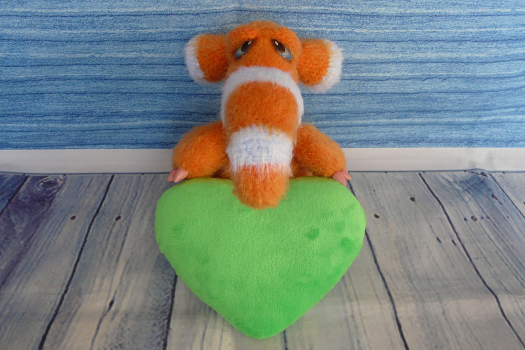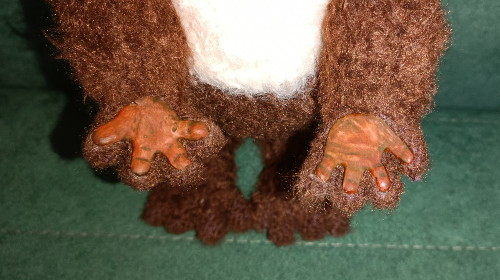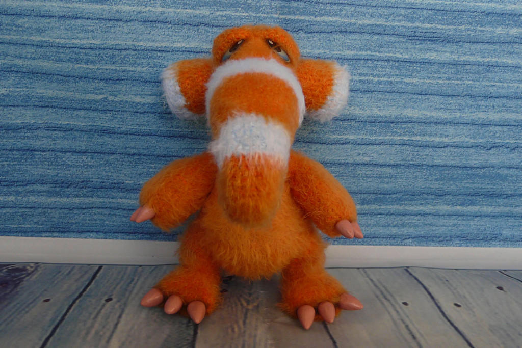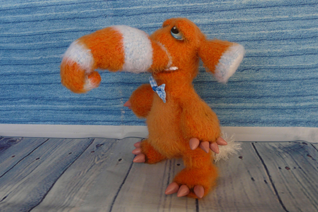 Размер 15 см, подвижная голова на шплинтовом креплении, лапы и хвост на меднопроволочном каркасе.