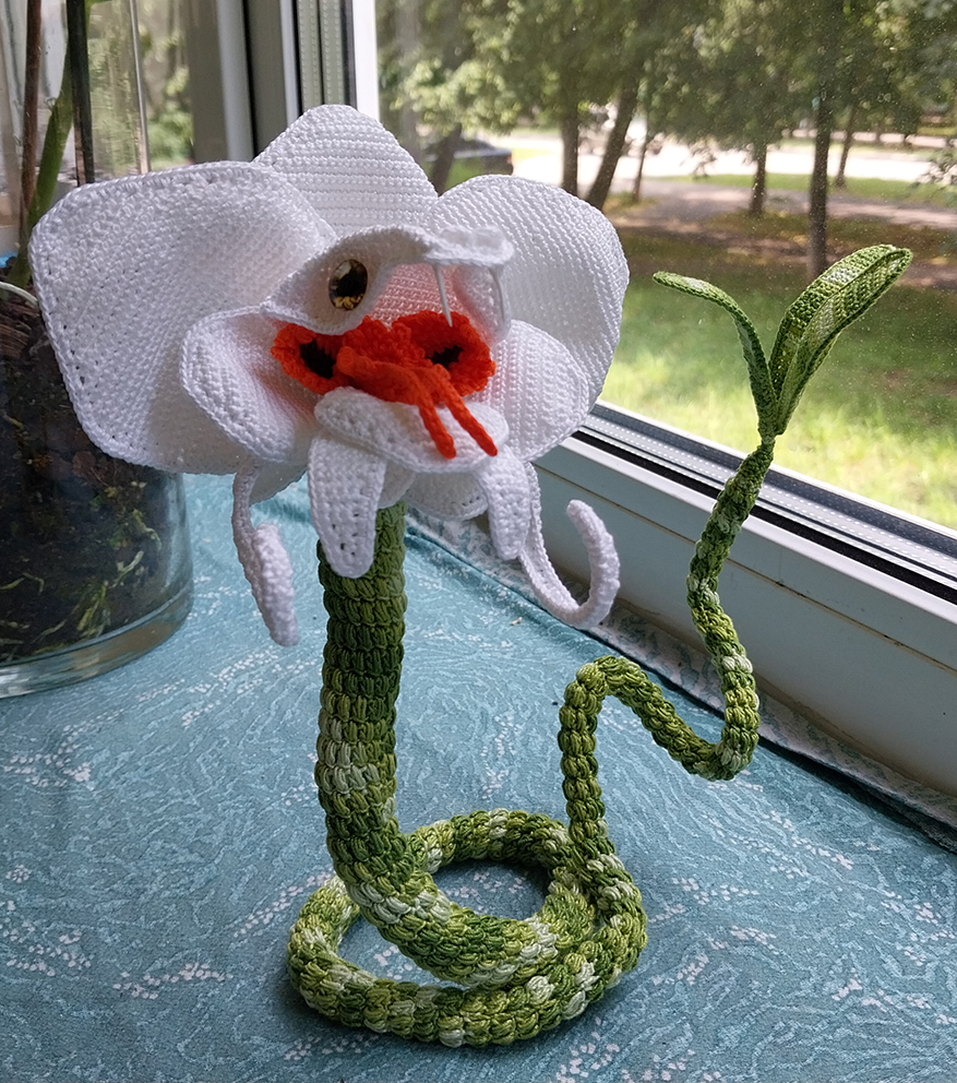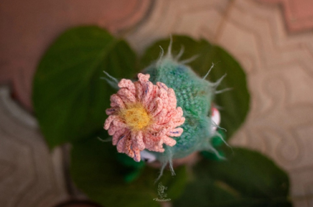 Связала вот такой цветочек в горшочке в подарок. По мк на ютубе, который очень легко там найти, ну а связать - еще проще.