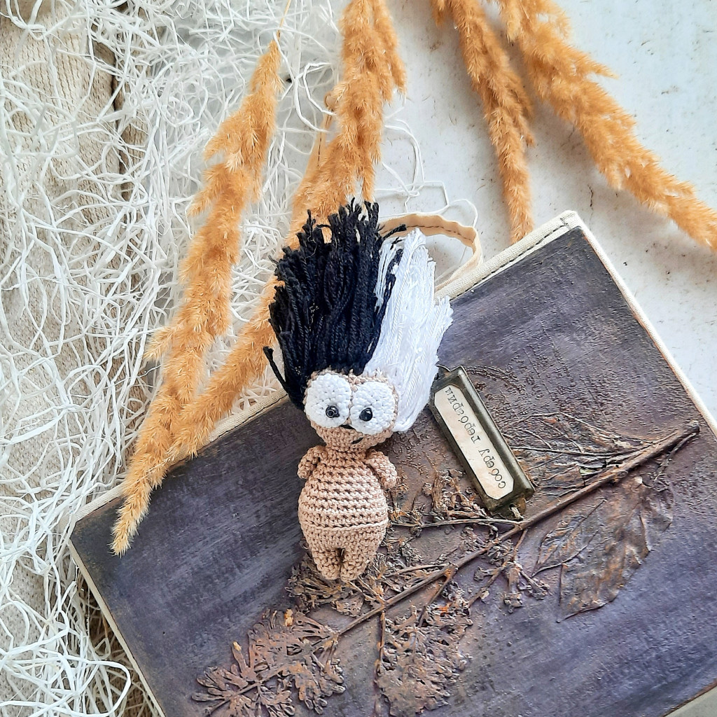 Мухомор росточком 12,5 см, за основу взято описание Rewda "Мухоморочка Мара". Вязать я начала по картинке, а потом нашла МК и поняла, что у меня все не так, я вязала снизу вверх, где-то шире, где-то уже, чуть длиннее, ручки ввязала и т.д. , лишь шляпку я связала по описанию автора. В конечном итоге вышло очень похоже на оригинал. Мухоморочка связана для осеннего обмена.