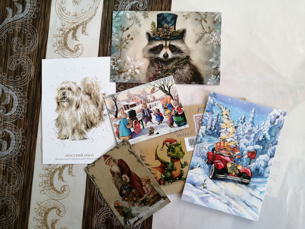 Девочки, дорогие мои, сразу прошу прощения за качество фотоотчетов, у нас темнота все время когда я дома, а при искуственном освещении телефон "видит" мутновато. Но, поверьте, я очень-очень рада обменам и ценю каждую открытку, любуюсь ими. Просто фотограф был рукожо.. начинающий))))))