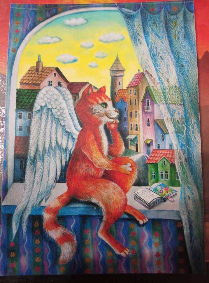 А ещё сюрпризная открытка с совушкой и девочкой на фоне разводных мостов.