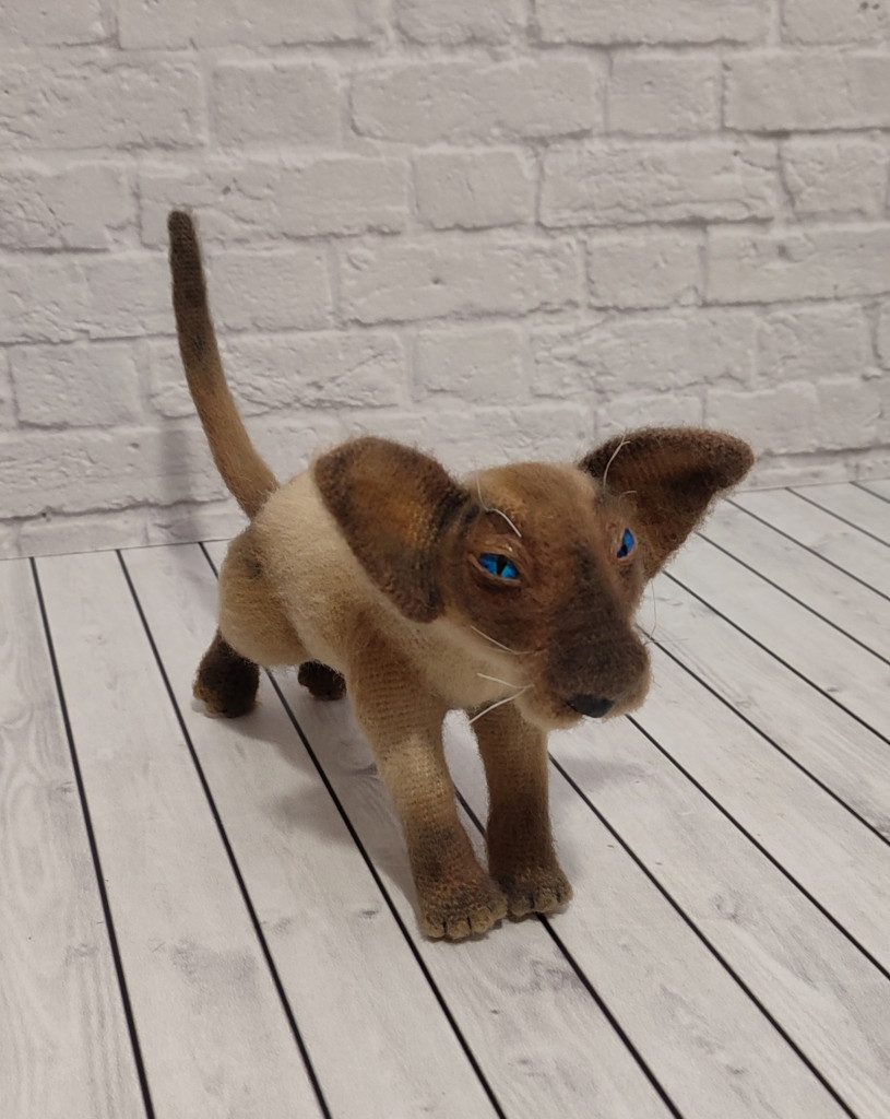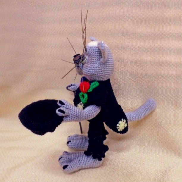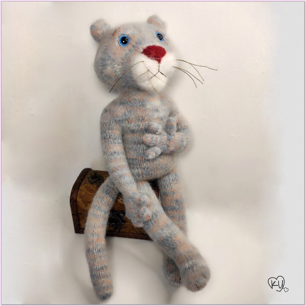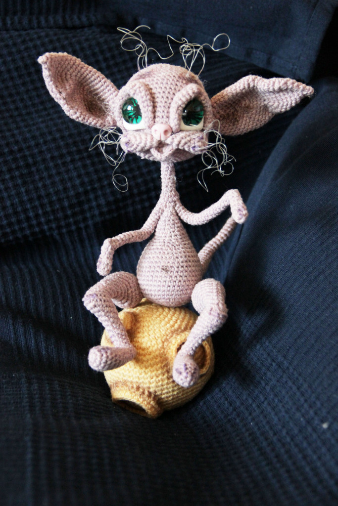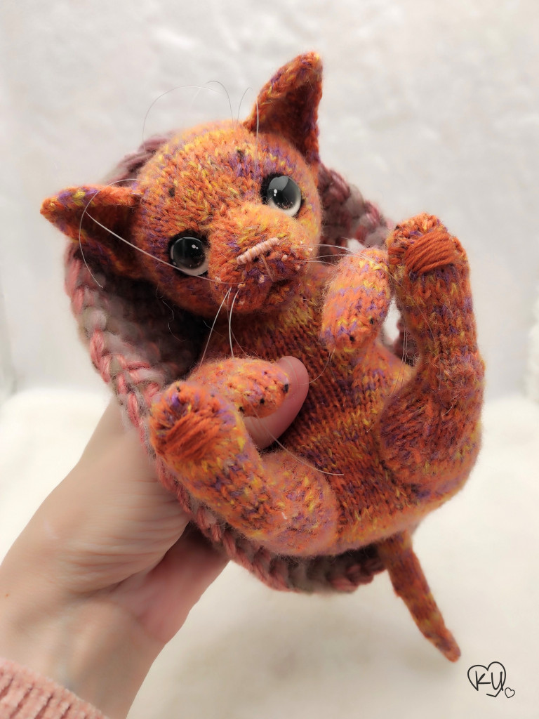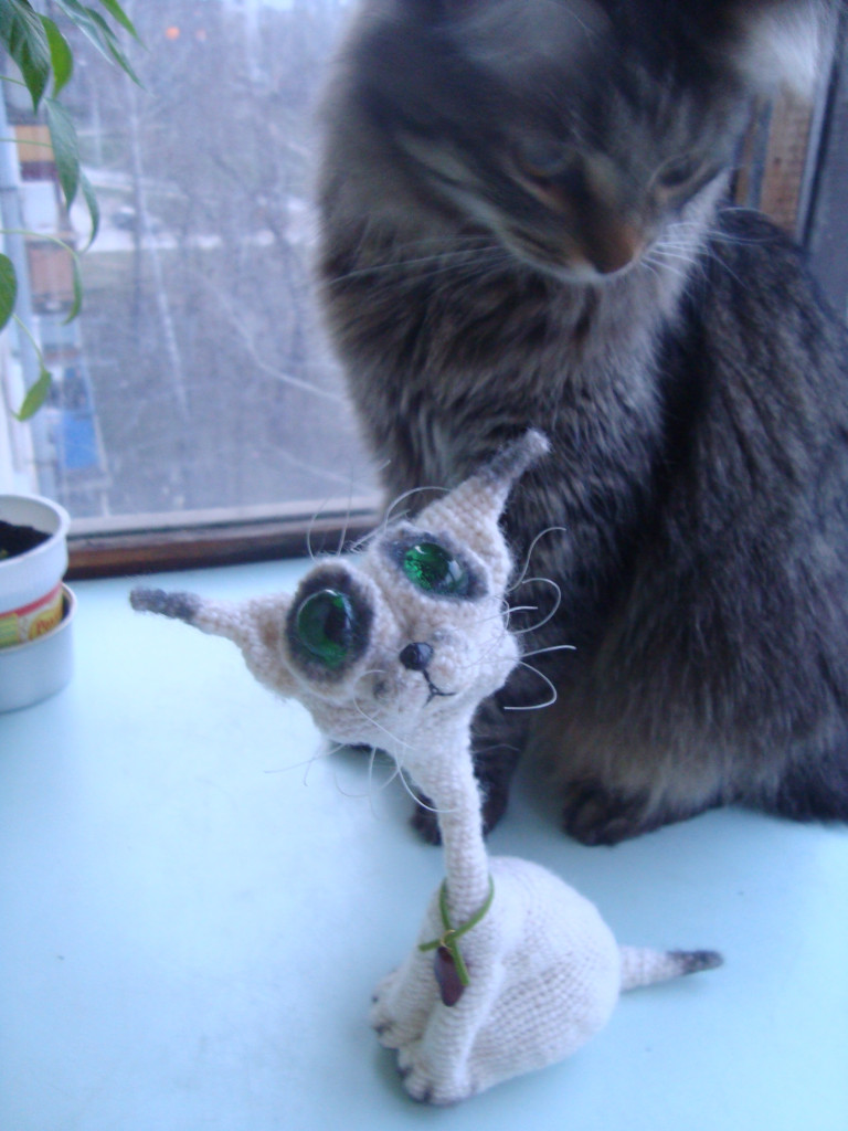 Кошка связана по МК китайского мастера. Полностью на проволочном каркасе.