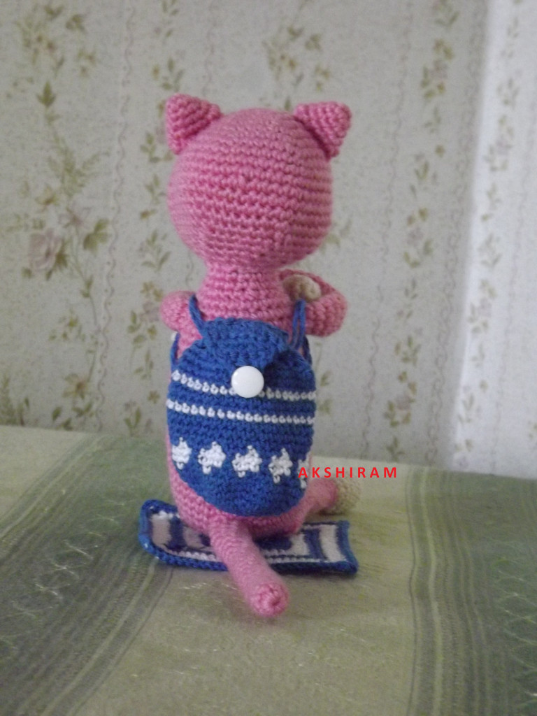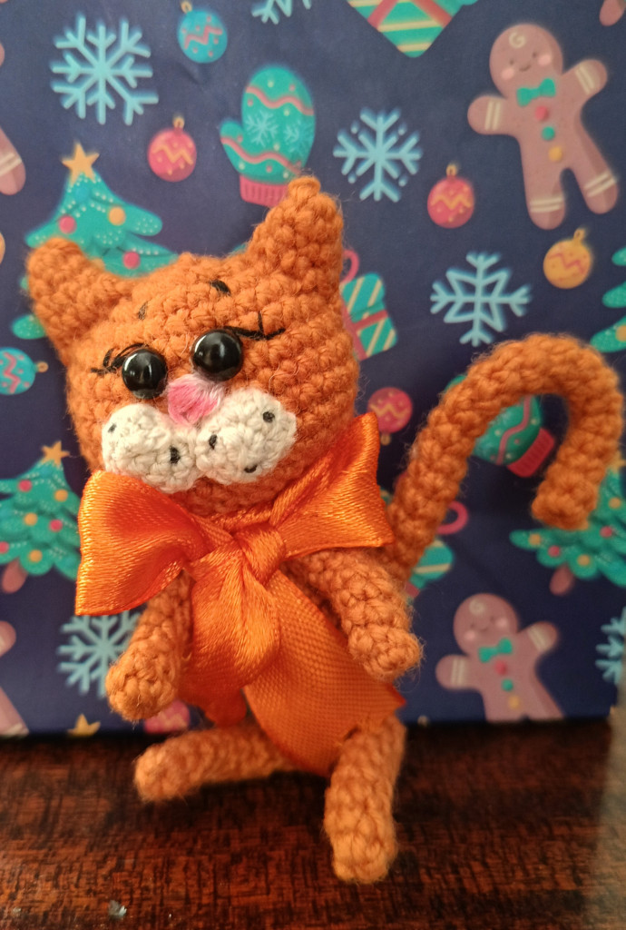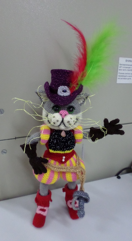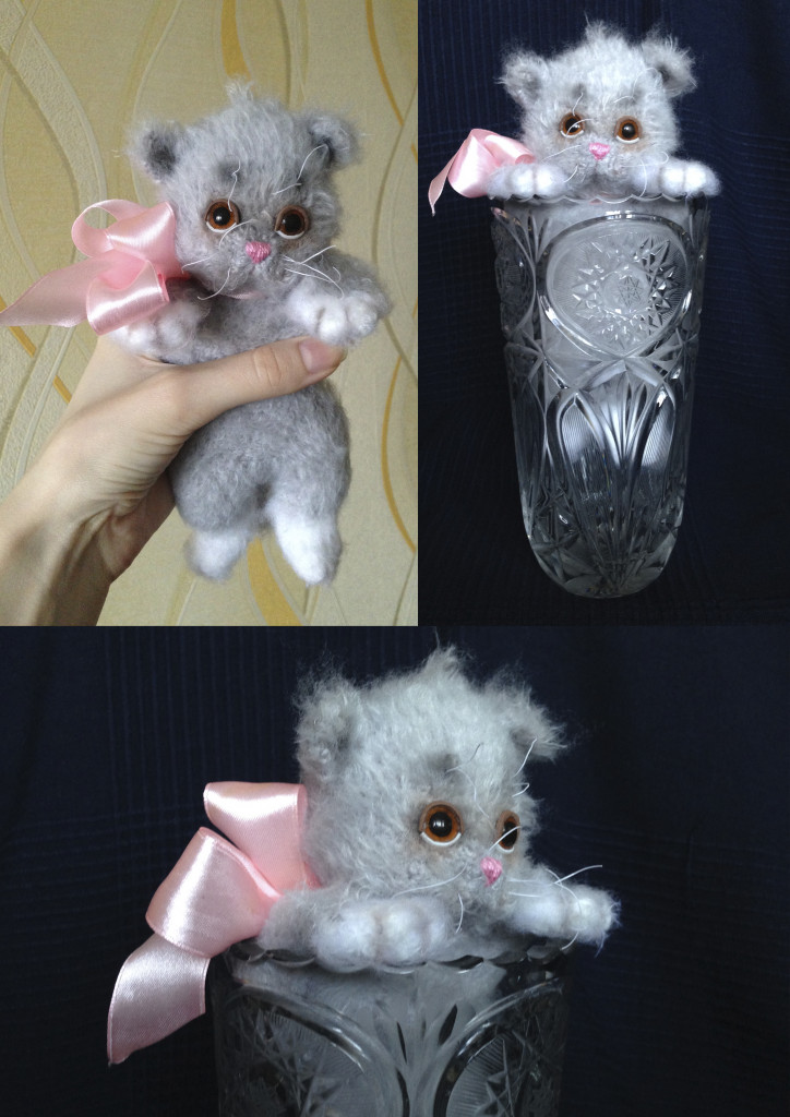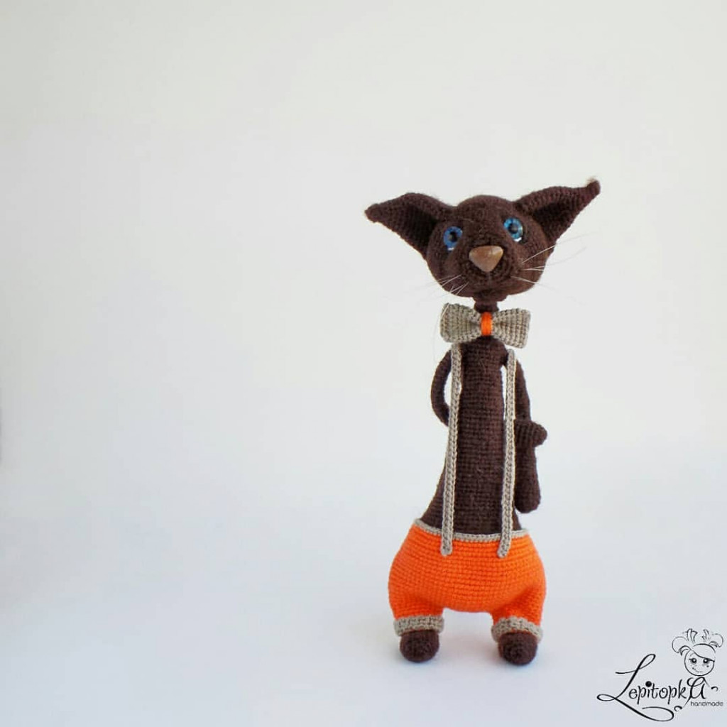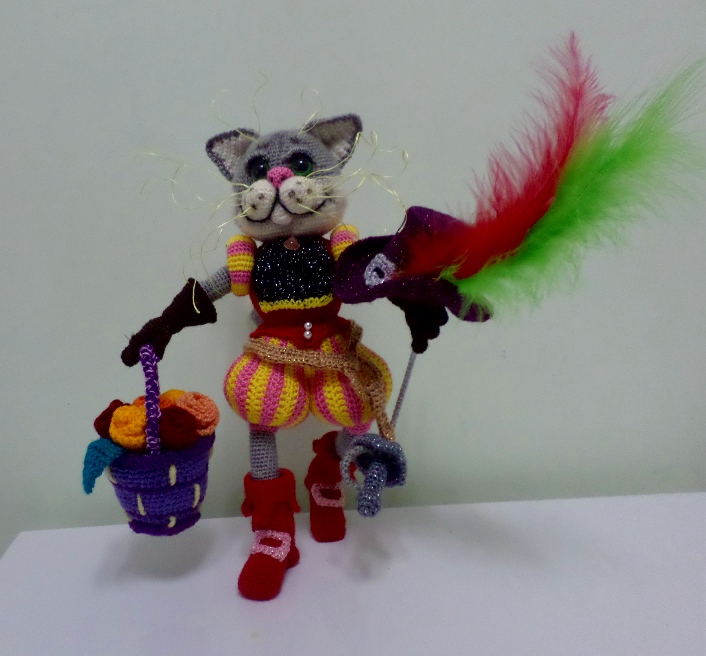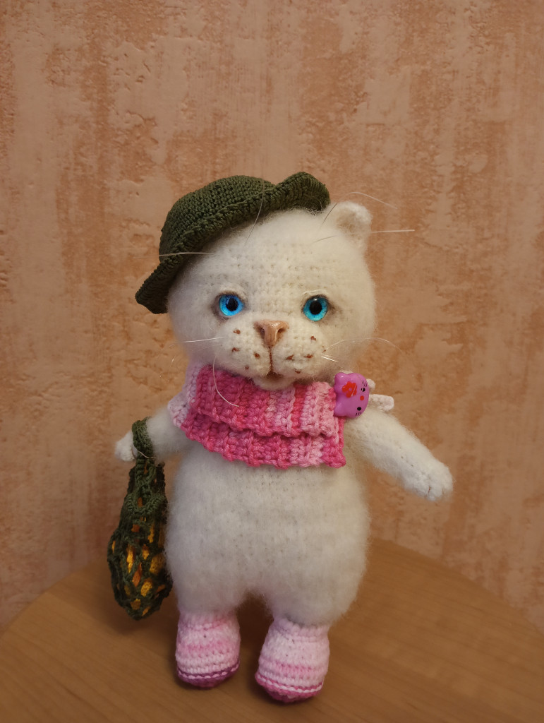 Кошка связана по МК китайского мастера. Полностью на проволочном каркасе.