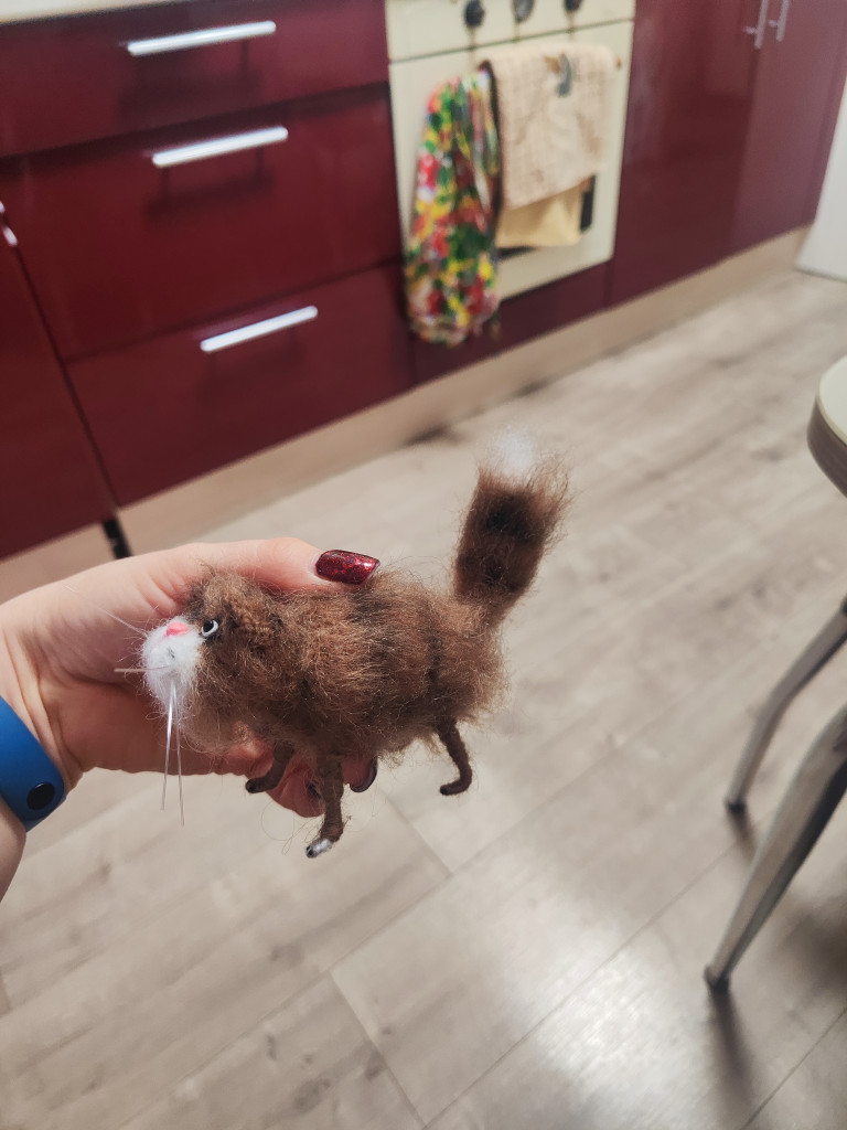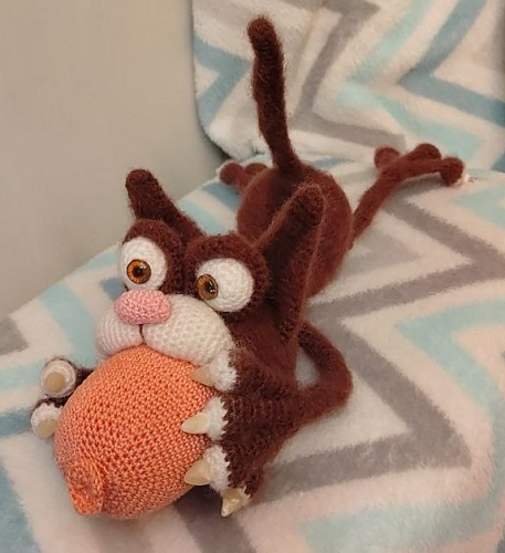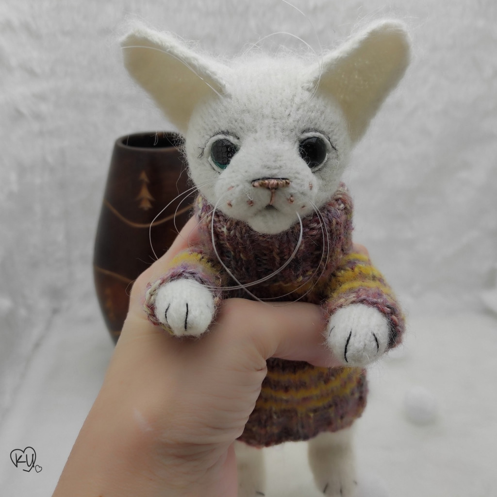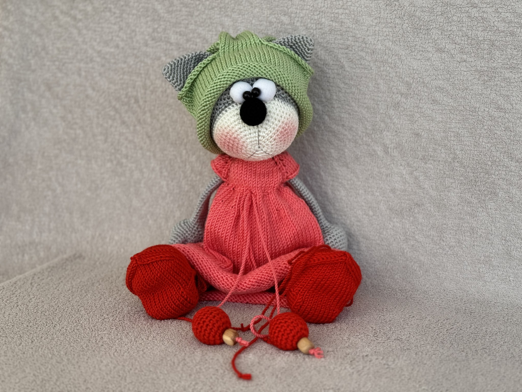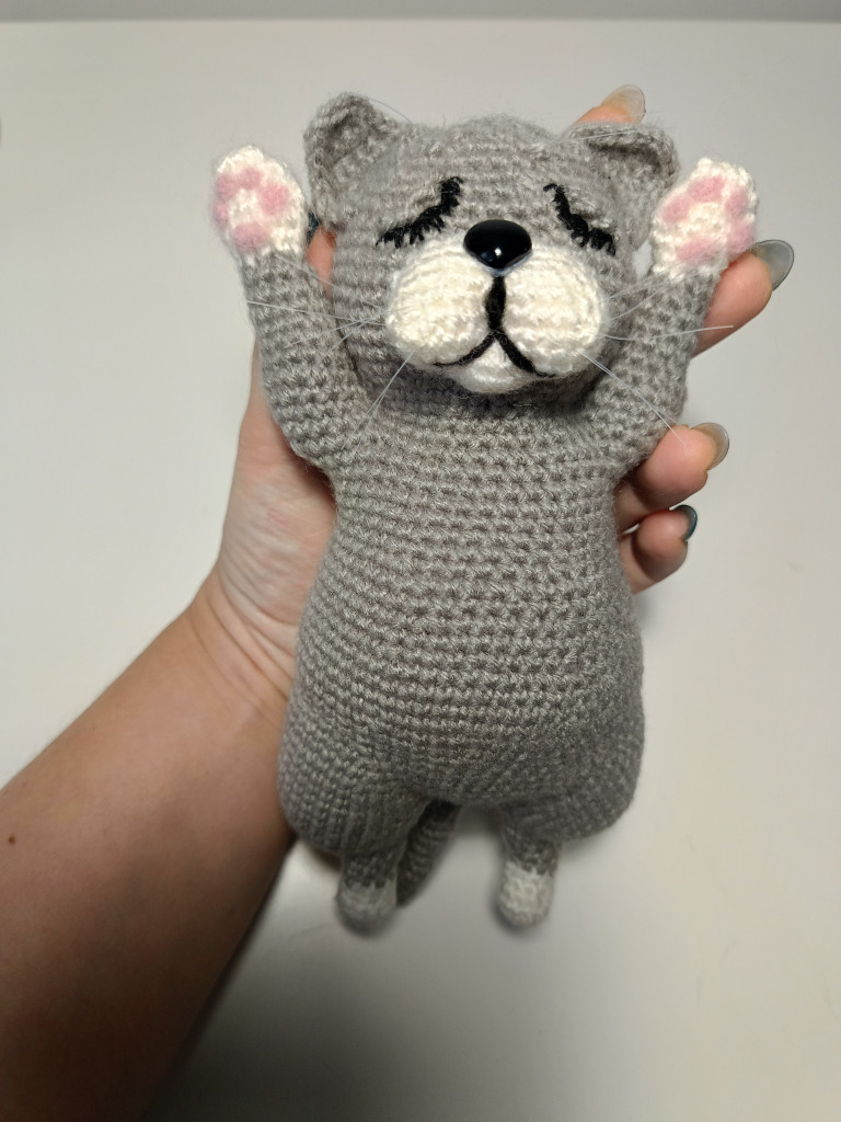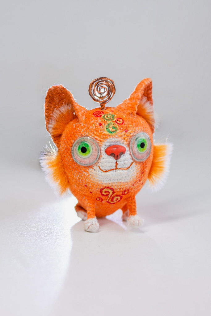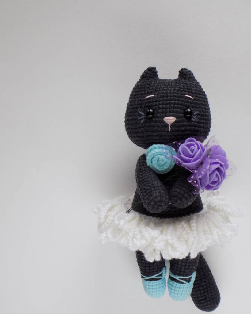 Кошка связана по МК китайского мастера. Полностью на проволочном каркасе.