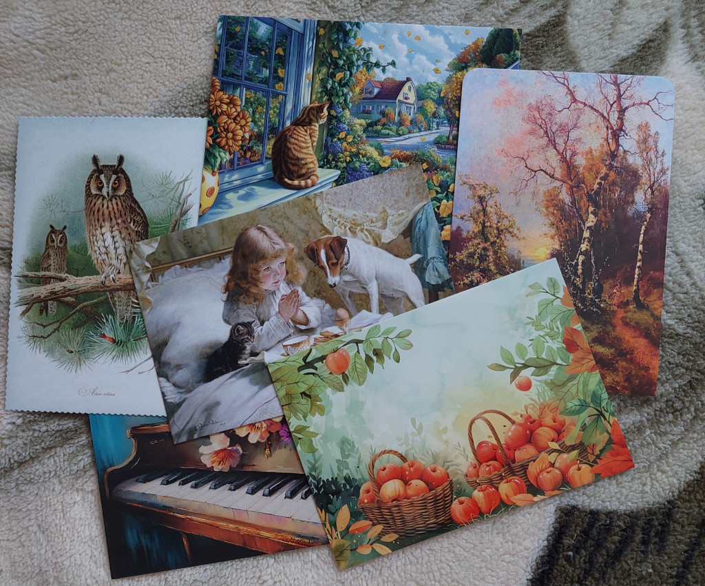 Второй от Жанны @nisana. А в нём открытки из лотереи и сюрпризные по обмену, а также подарочки. Всё очень красивое и чудесное. Жанночка, спасибо от всего сердца :kiss2: и особенно за открытку "Голубка", у меня ещё такой нет.