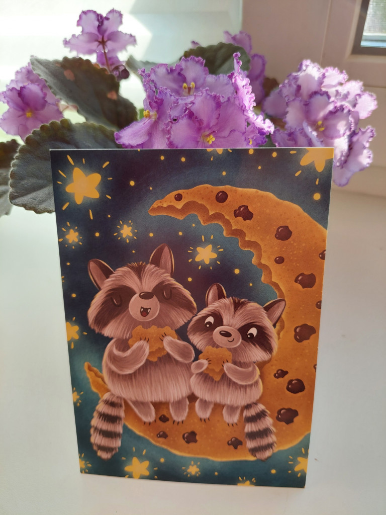 Я сегодня получила милую открытку с енотиками по светлому обмену от Милы @MilaN. А на обороте чудесное стихотворение "Кто откусил половинку луны?"
