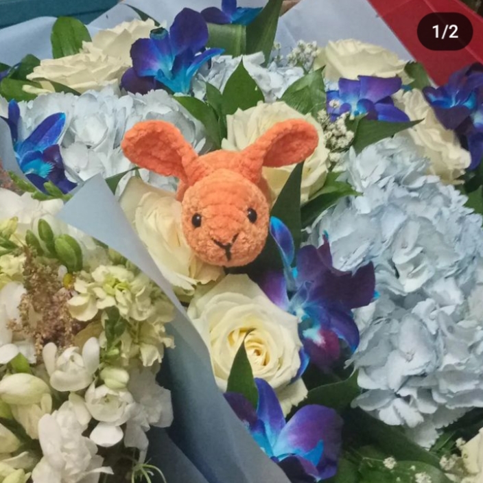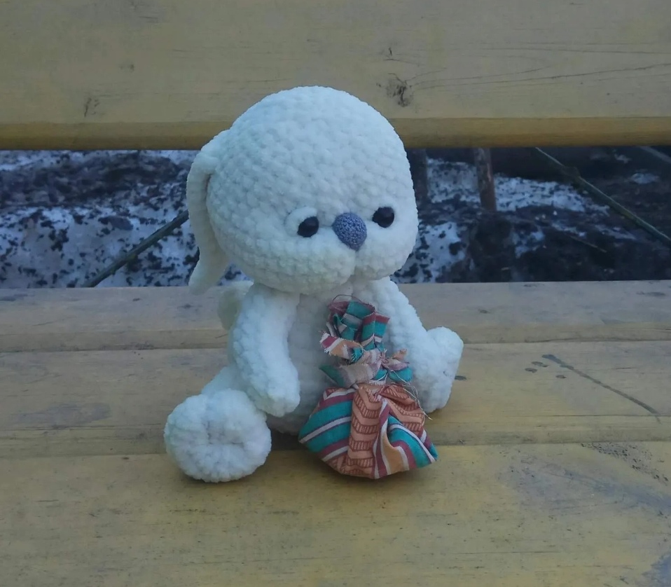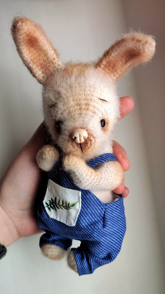 А это зайка, мк на которого я хотела создать. Мк так и не вышел, но эта прелесть живёт у меня. Люблю его🥰