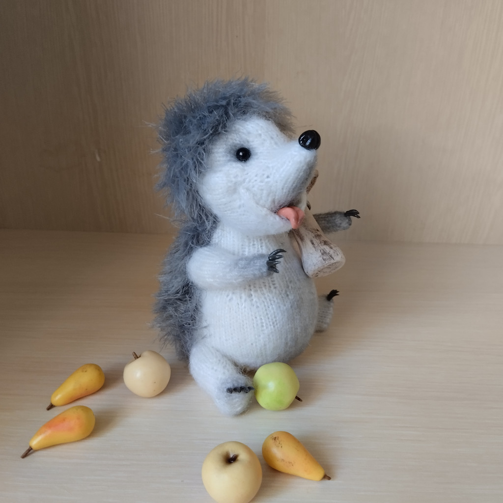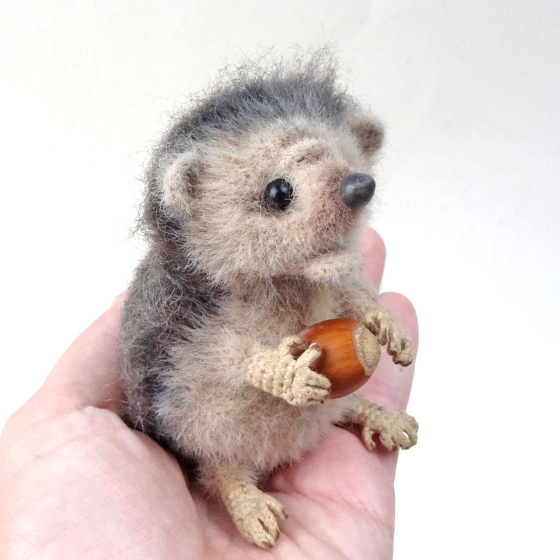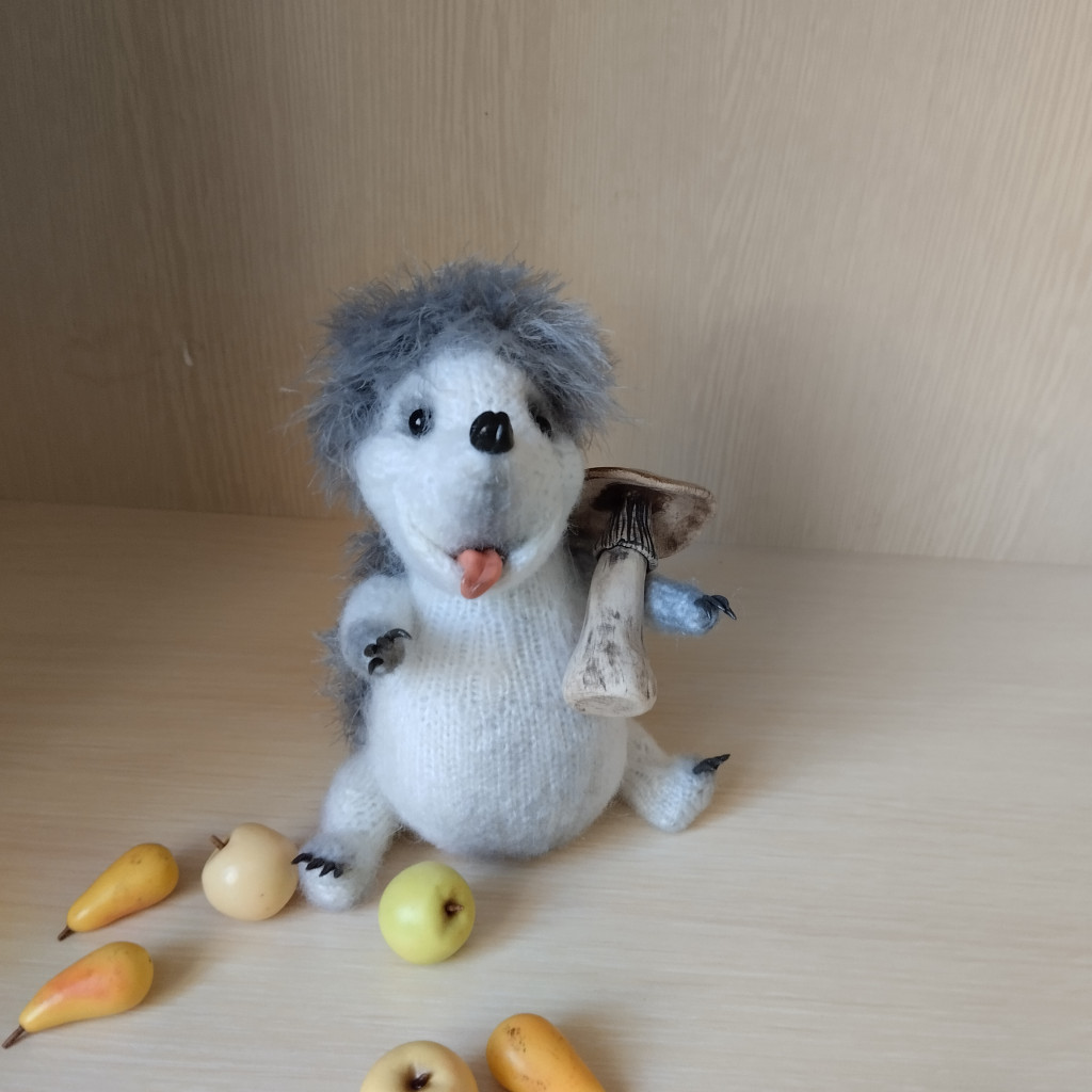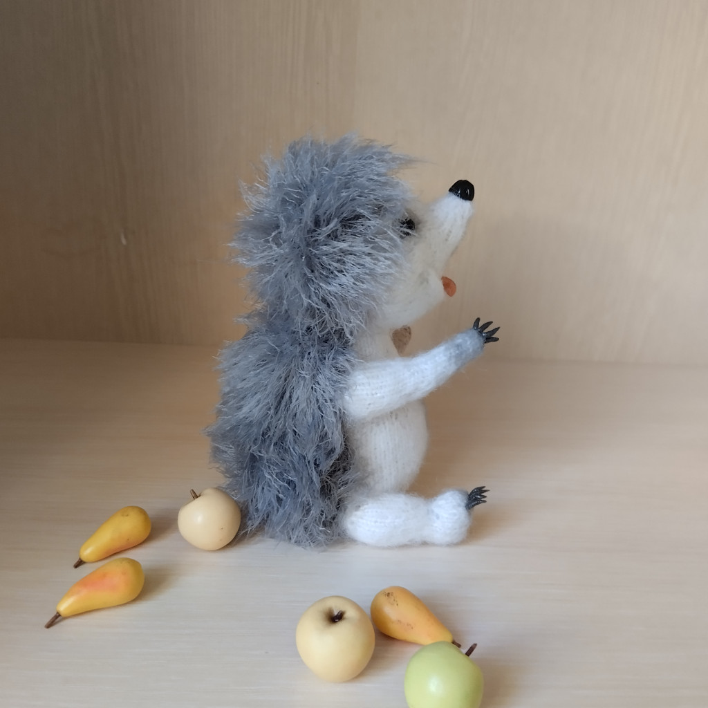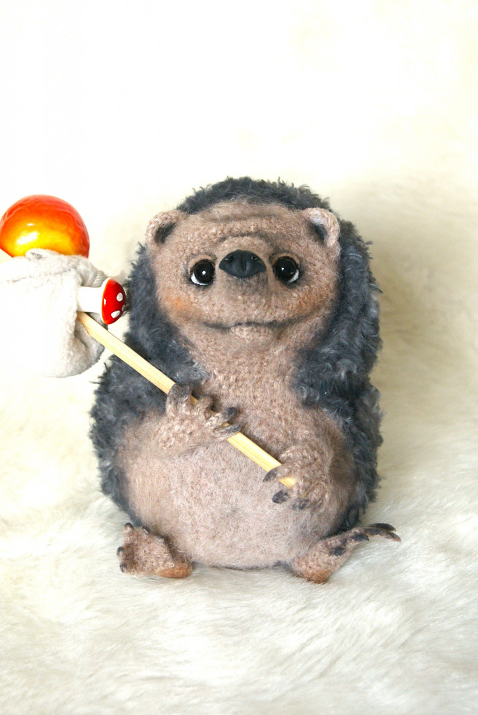 Ёжик Шуршик, авторская работа. Игрушка каркасная, вяжется частично на лицо (лапки), частично наизнанку (голова, туловище). Пришивных деталей нет, все детали ввязываются. Ростиком ёжик получился 8,5 см. Для игрушки использовалась мохерсодержащая пряжа в 100 г 500 м.