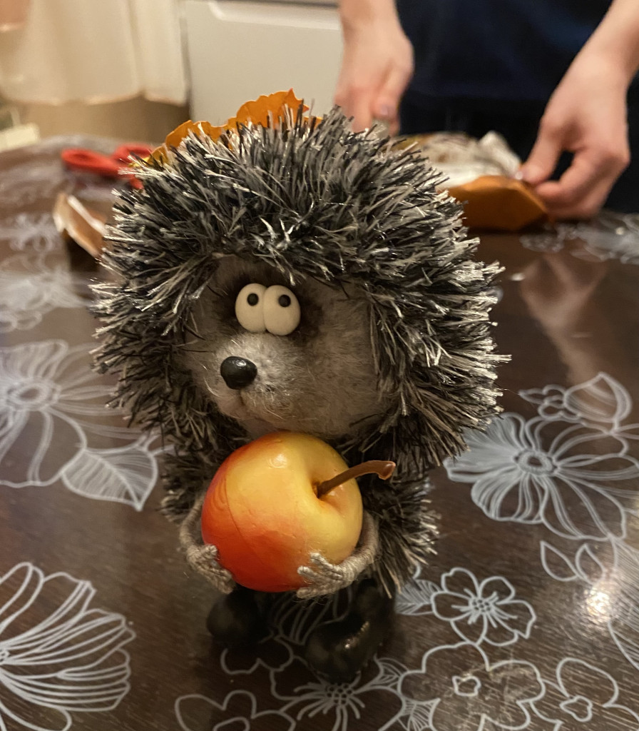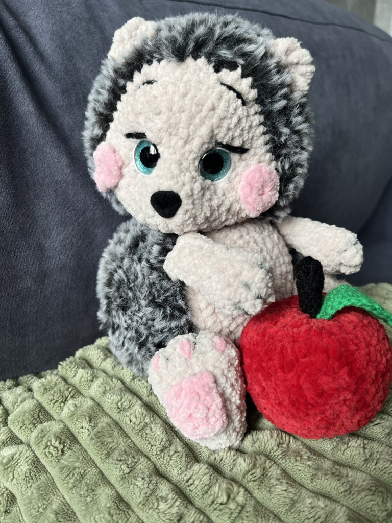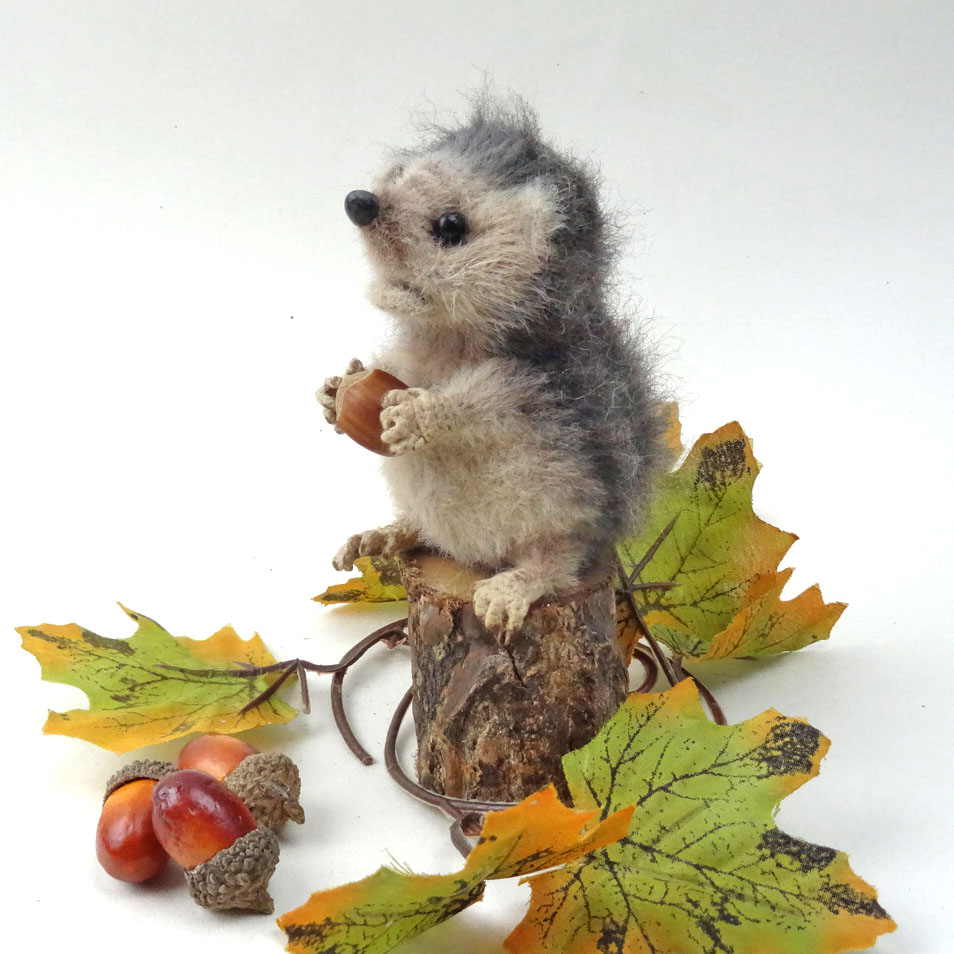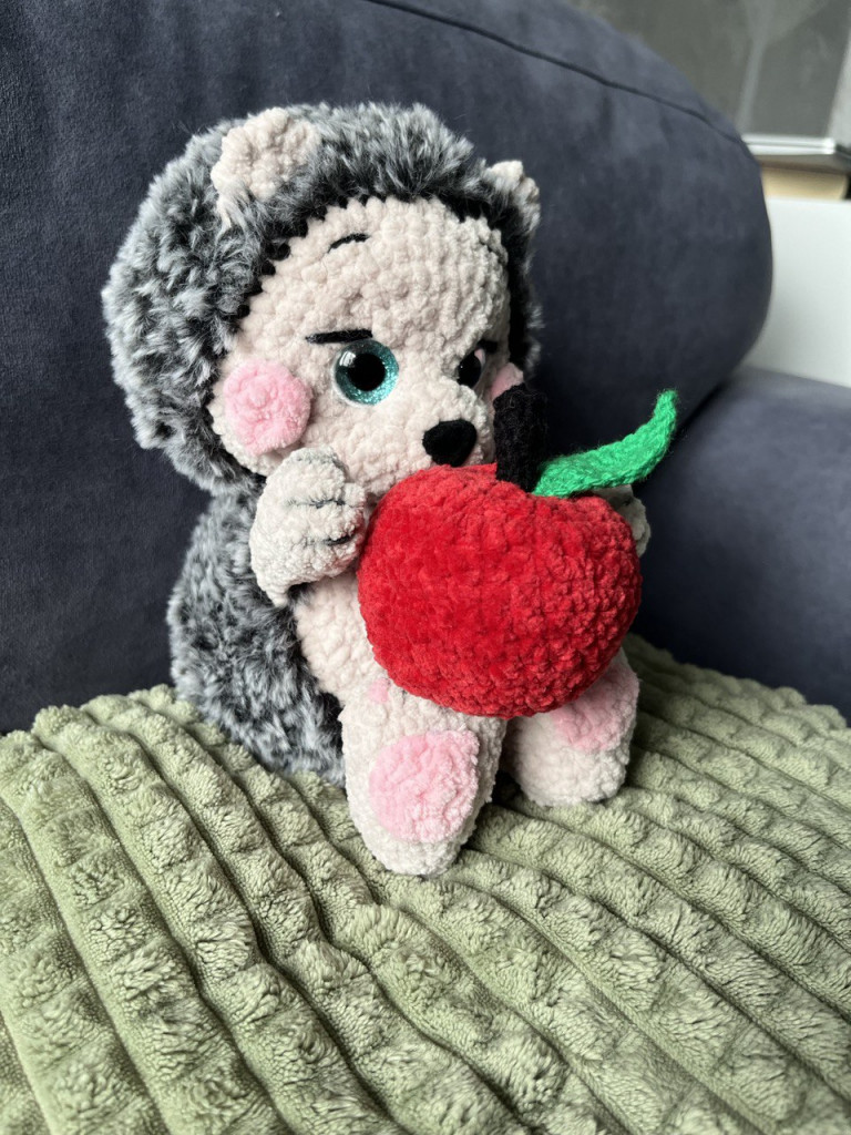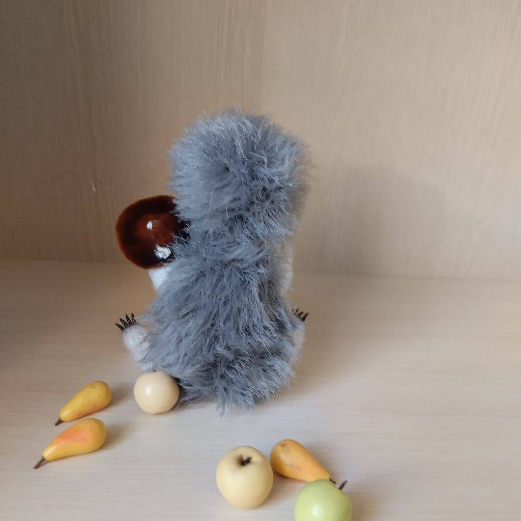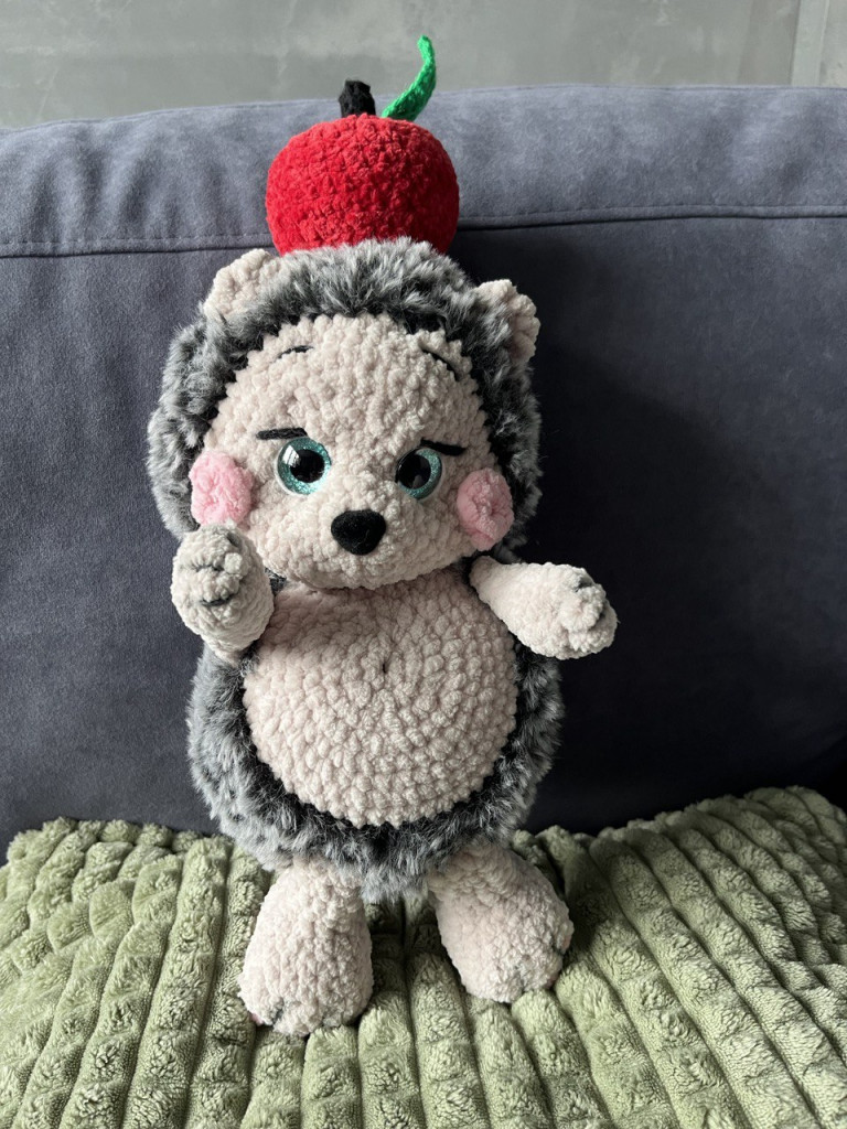 Ёжик Шуршик, авторская работа. Игрушка каркасная, вяжется частично на лицо (лапки), частично наизнанку (голова, туловище). Пришивных деталей нет, все детали ввязываются. Ростиком ёжик получился 8,5 см. Для игрушки использовалась мохерсодержащая пряжа в 100 г 500 м.