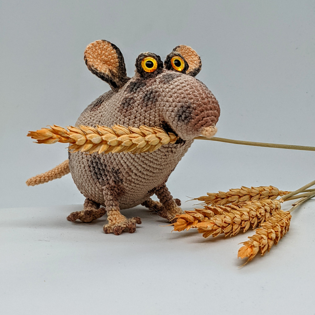 Милый обжорка хомячок Фома, связан по мк Эльвиры Супонькиной. Для его создания я использовала мохерсодержащую пряжу в 100 г 1000 м + пряжа аналог Норки в 100 г 1000 м, крючок 0.75. Голова и передние лапки подвижны, на шплинтах. Пришивных деталей нет, все детали ввязываются. Ростиком хома получился 9 см.