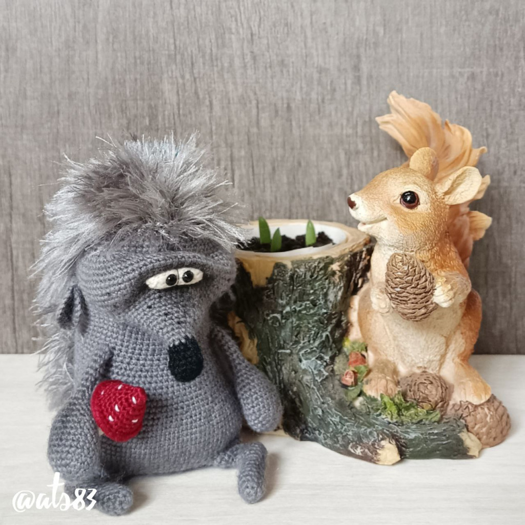 Обнаружила ещё ежа. Вязала его для одного из обменов.