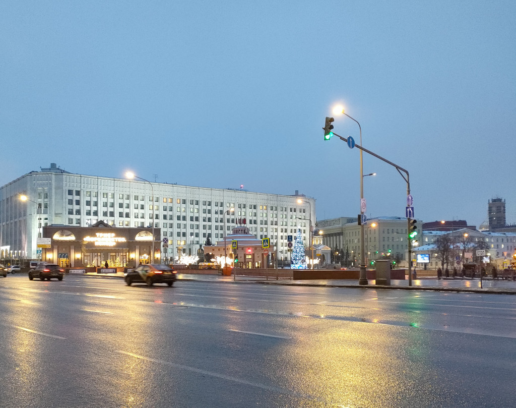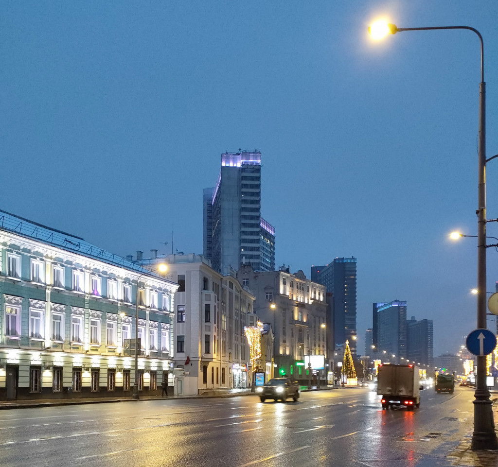 Центр Москвы субботним утром: ст. метро Арбатская, Новый Арбат, Кутузовский проспект. Днем город накрыл густой туман, т.ч. сделать фото в своем районе не удалось.
