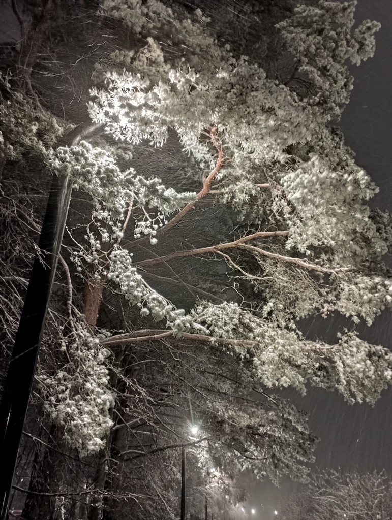 А нас вчера снегом завалило, и я сделала две фоточки из окна с работы)))) благо елки у нас растут шикарнейшие))))