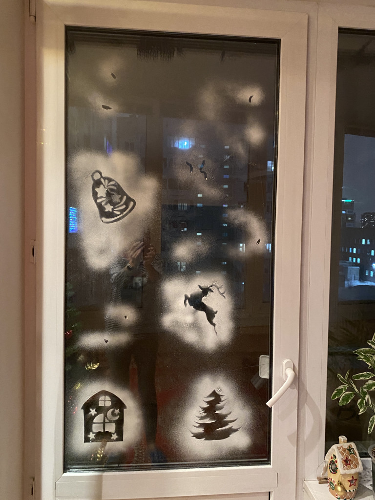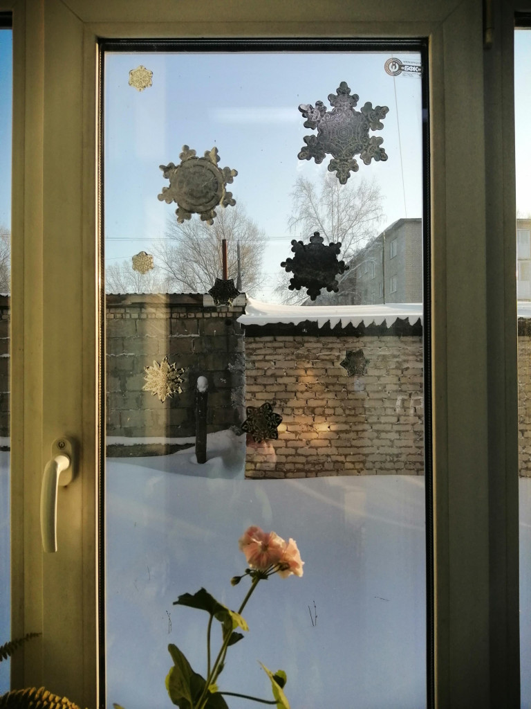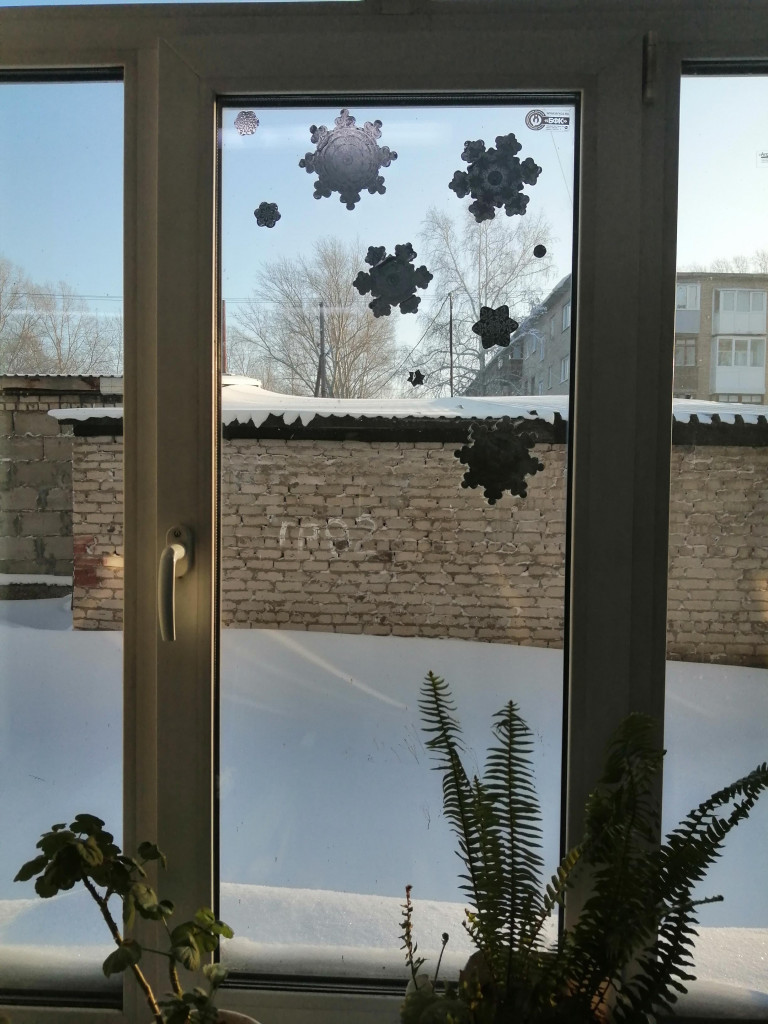 Но 2-й год подряд (ради новогодней тусовки) клею на окна «украшалки»