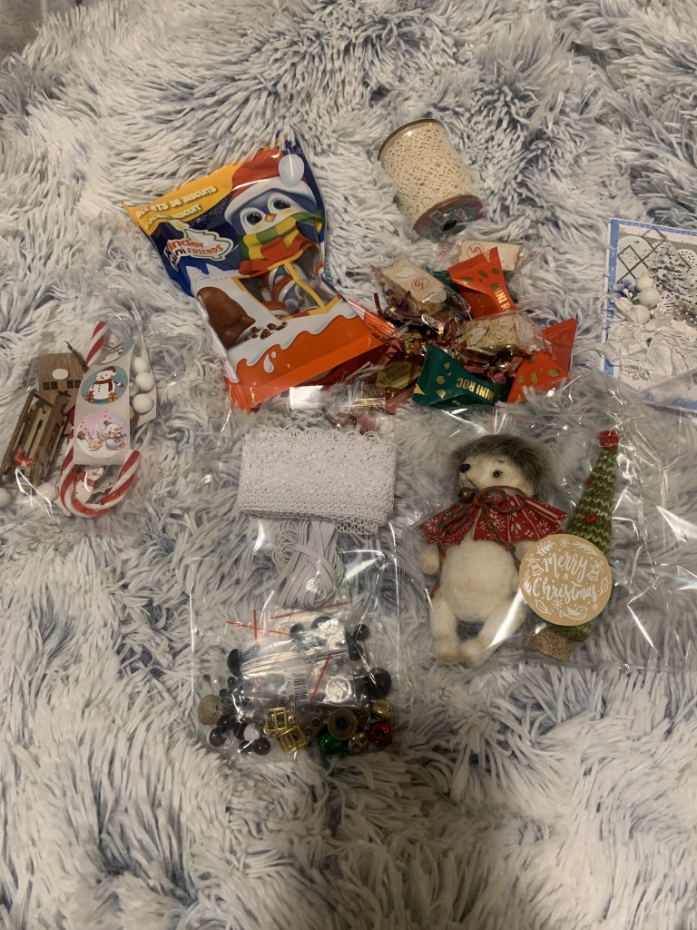 Немного поиграв ежиком я принялась рассматривать все,что он с собой привез .А там и хомяк мой был в восторге и калории как в санатории )) Огромнейшее тебе спасибо ,за такое прекрасное ,новогоднее настроение и подарочки ,которые с такой любовью и трепетом были упакованы в коробочку .Письмецо как и все другие письма от девочек отправилось в шкатулочку на память .Благодарю еще раз