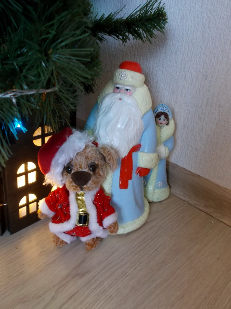 Ой, у меня чудненький мишка , такой плюшевый, пузатенький, нарядный, так и оставлю с новогодней парочкой пусть стоит на видном месте-прелесть)))