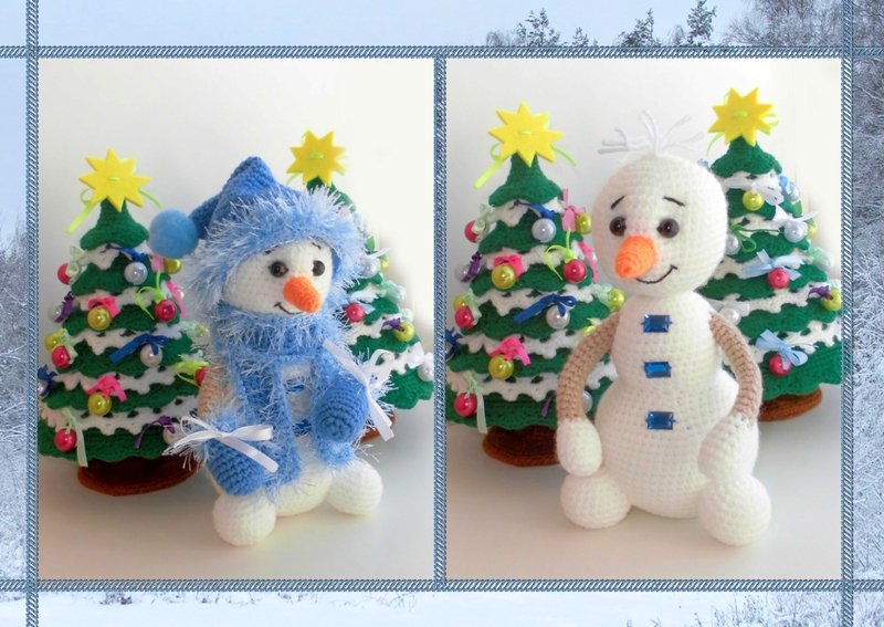 Снеговики по описаниям Светланы Комаровой и Марины Зиновьевой.