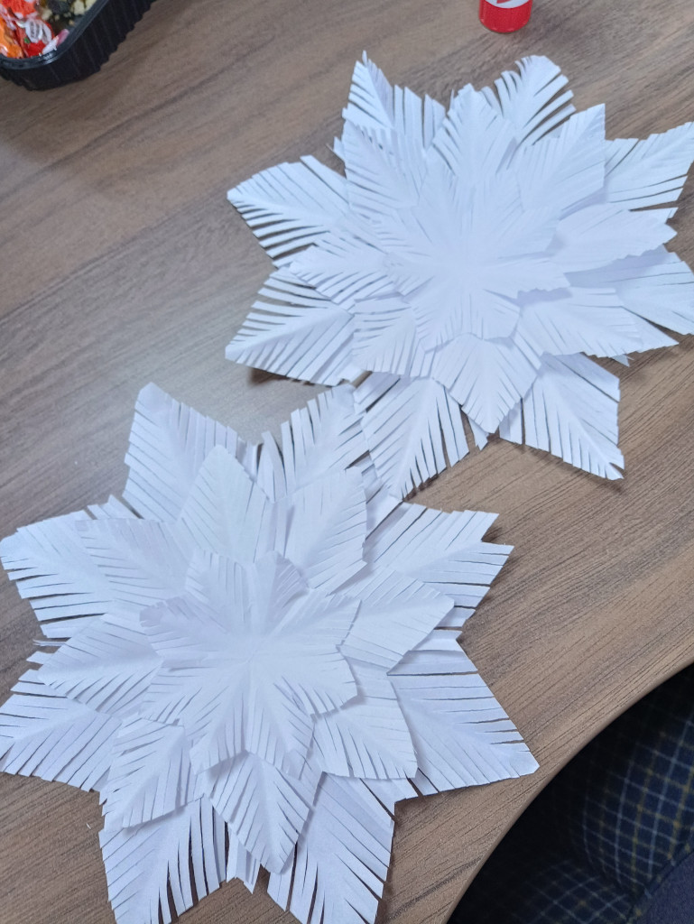 А, так я тоже могу похвастать. На прошлой неделе вырезали снежинки, звёздочки всякие
