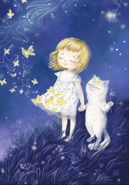 прислала открытку из игры тоже с лисичка и чудесную девочку. Не знаю кто из них и краше