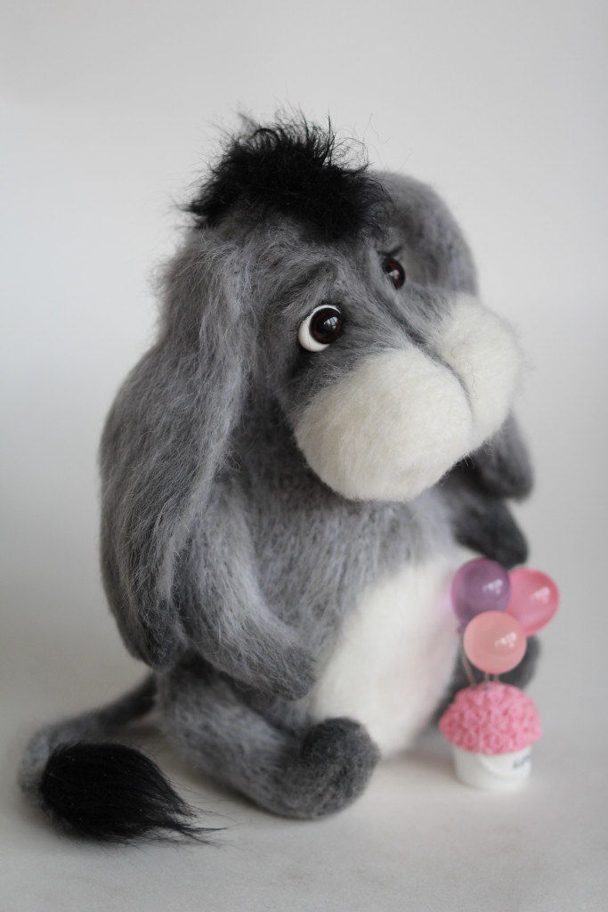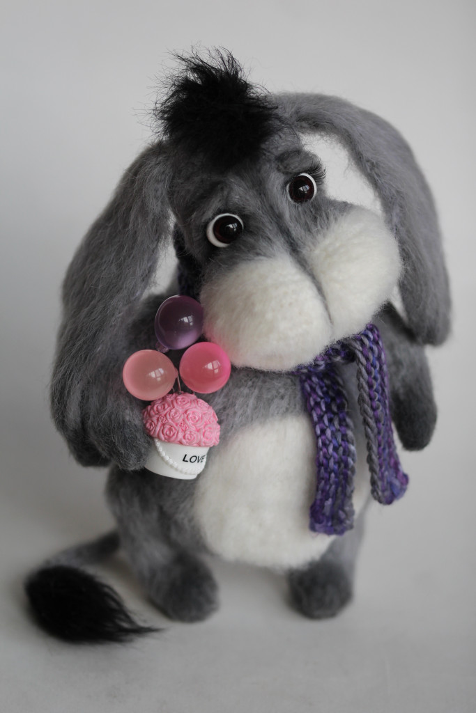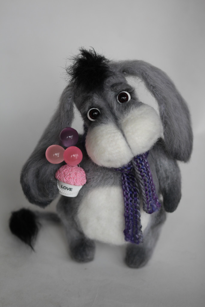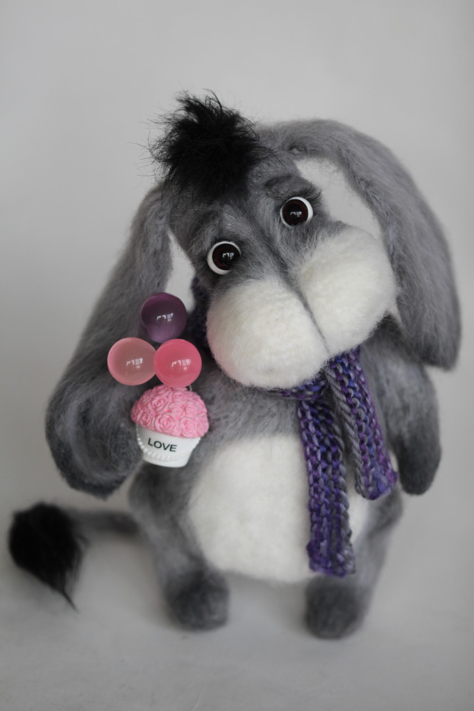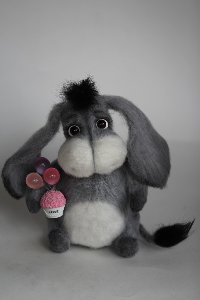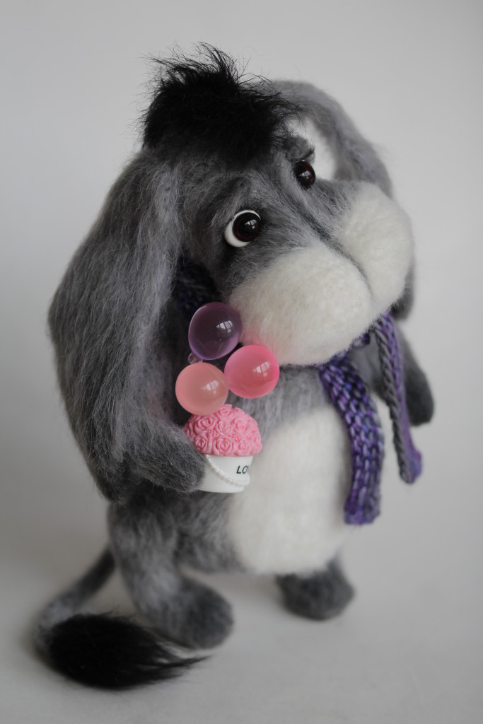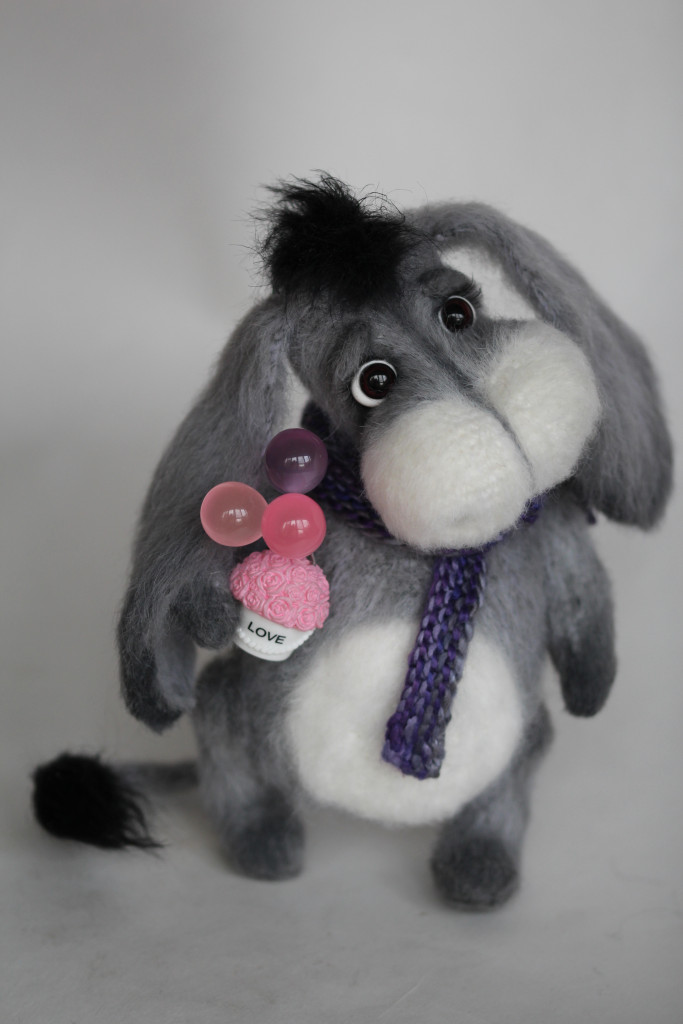 Здравствуйте всем,показываю ослика,которого связала тестируя описание.Использовала китайскую пряжу мохер нежный и норку,вязала крючком 1.5 ,рост стоя 19см,получила много радости от его создания,потому что он очень милый!