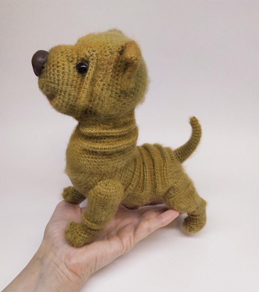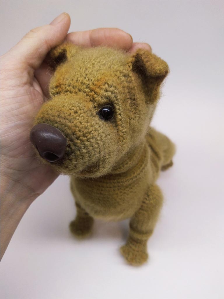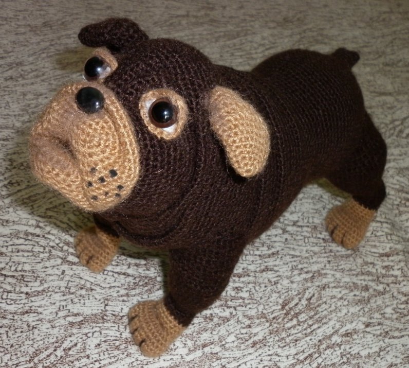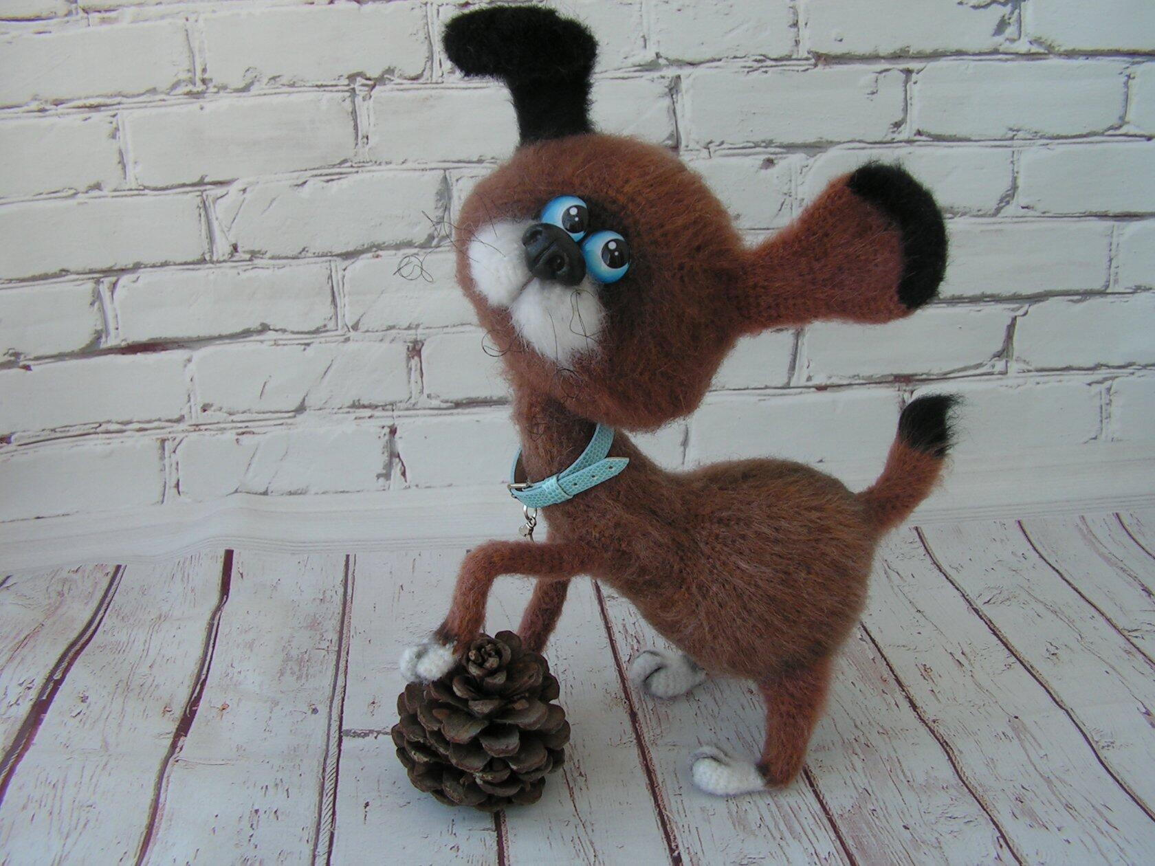 вязала эту собачку в он-лайн формате за 3 вечера: с 2 итальянскими вязальщицами садились в одно время и вязали вместе (они в талии, я в Астане), и общались по ходу пьесы. присылали фото кто сколько связал)) Собачка сиропчик по МК Марины Чучкаловой.