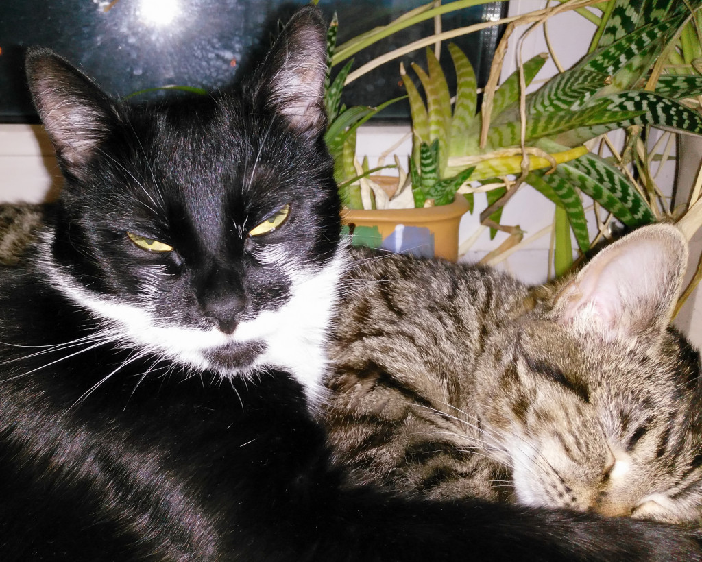 Представляю моих неулыбчивых кошечек. Роза, она же Розолинда, она же Сара, она же, Кончита изображена на моей аватарке. Нервно-серьезная разрешает погладить себя только тогда, когда ей хочется. Вторая просто Муся, кошка-созерцательница.