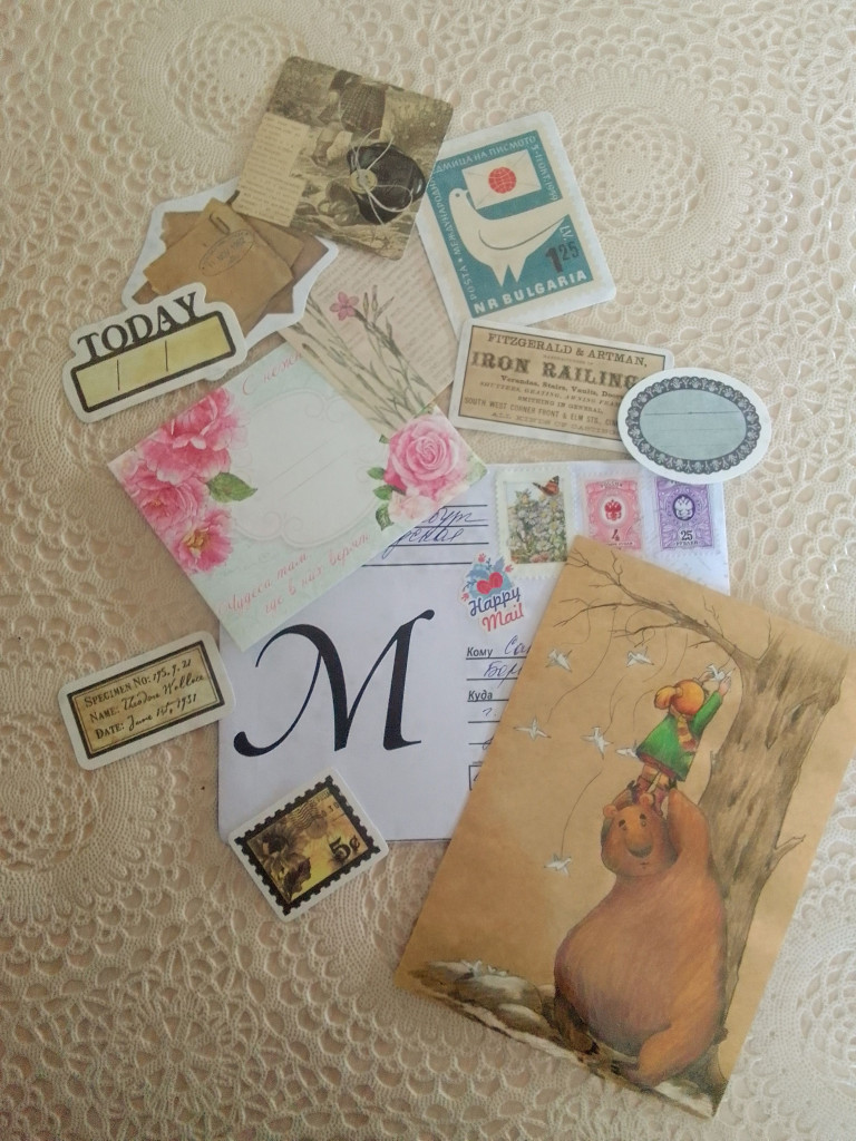 От Юлии @Ю.Ю. на одну букву М - мишка и конвертик с буквой М , а в очаровательном маленьком конвертике наклеечки для оформления... :adore:
