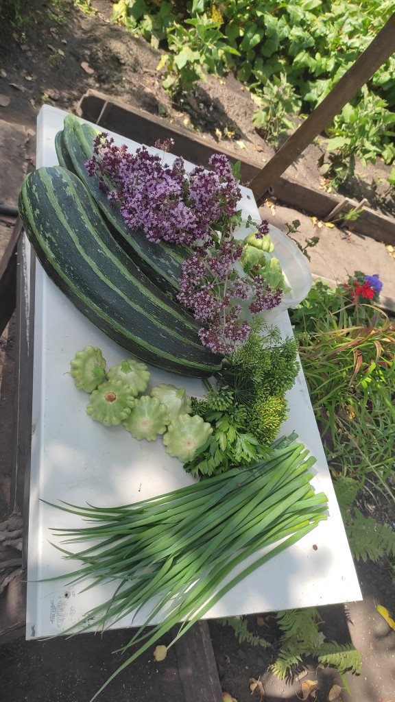 , лук сгнил совсем, кабачки тоже подгнивают, лучше всего трава себя чувствует, ей прям хорошо, да что хорошо, просто замечательно!