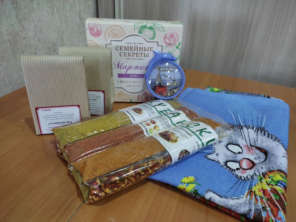 А полотенце для моей кухни в голубых тонах! А чай, мармеладки, специи - тут уже в восторге мои мужчины, любители готовить и заваривать чаи!!!