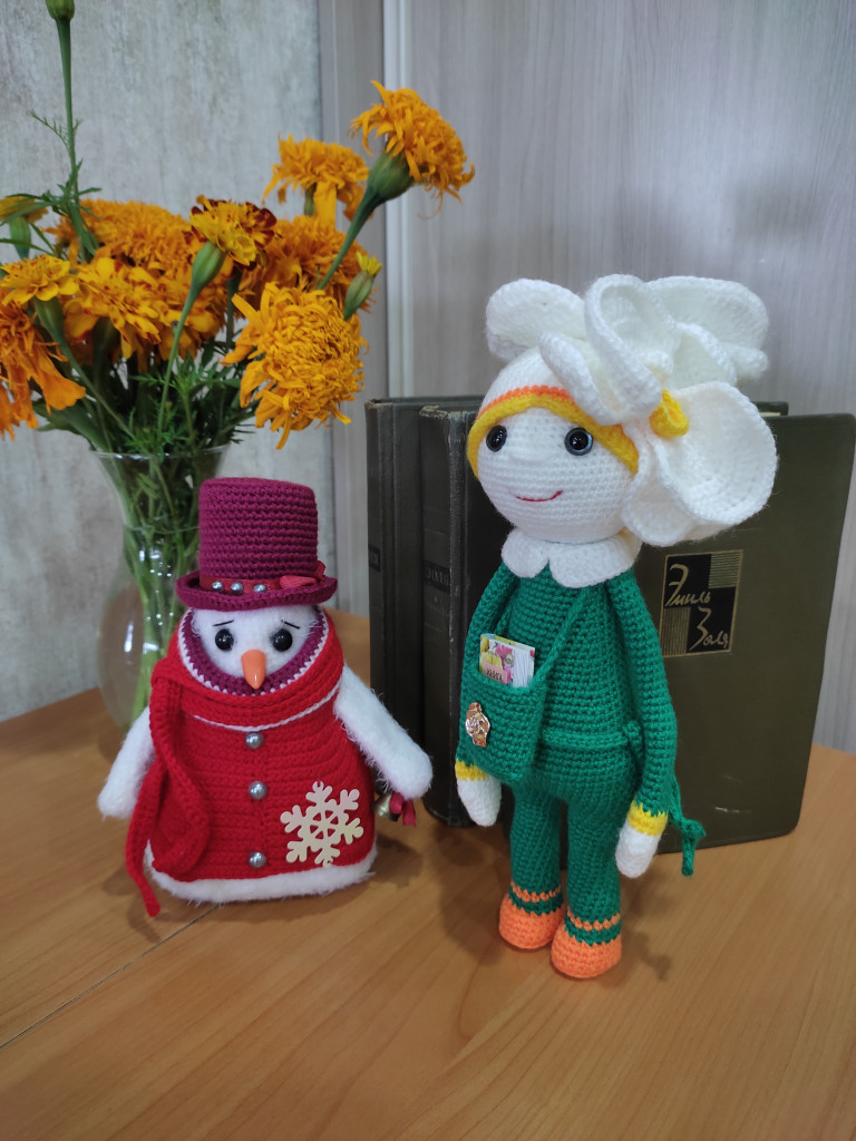 Она такая изящная, она такая Прелесть, а в сумке у неё что?! Книга! Малюсенькая, но настоящая Книга цветов! Ну и Орхидея привезла друга - а это уже пополнение моей великолепной коллекции снеговиков!!!